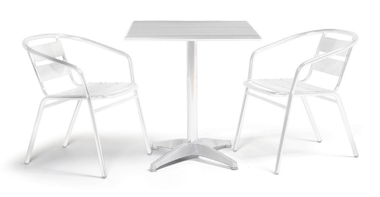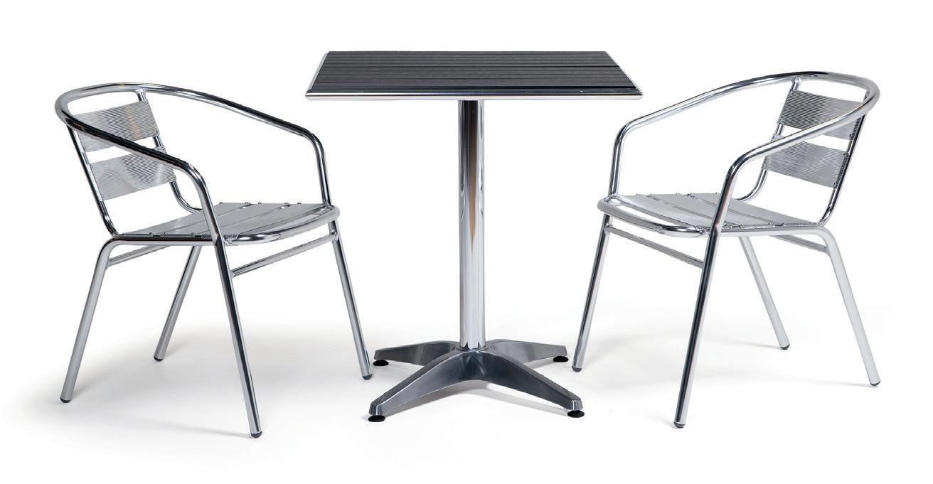 Letvægtstol i aluminium, der passer til alle udendørs siddepladser og vejret. Rust- og vedligeholdelsesfri. Stabil, men nem at flytte. Stabelbar og nem at opbevare. Sædehøjde 410 mm, totalhøjde 760 mm.