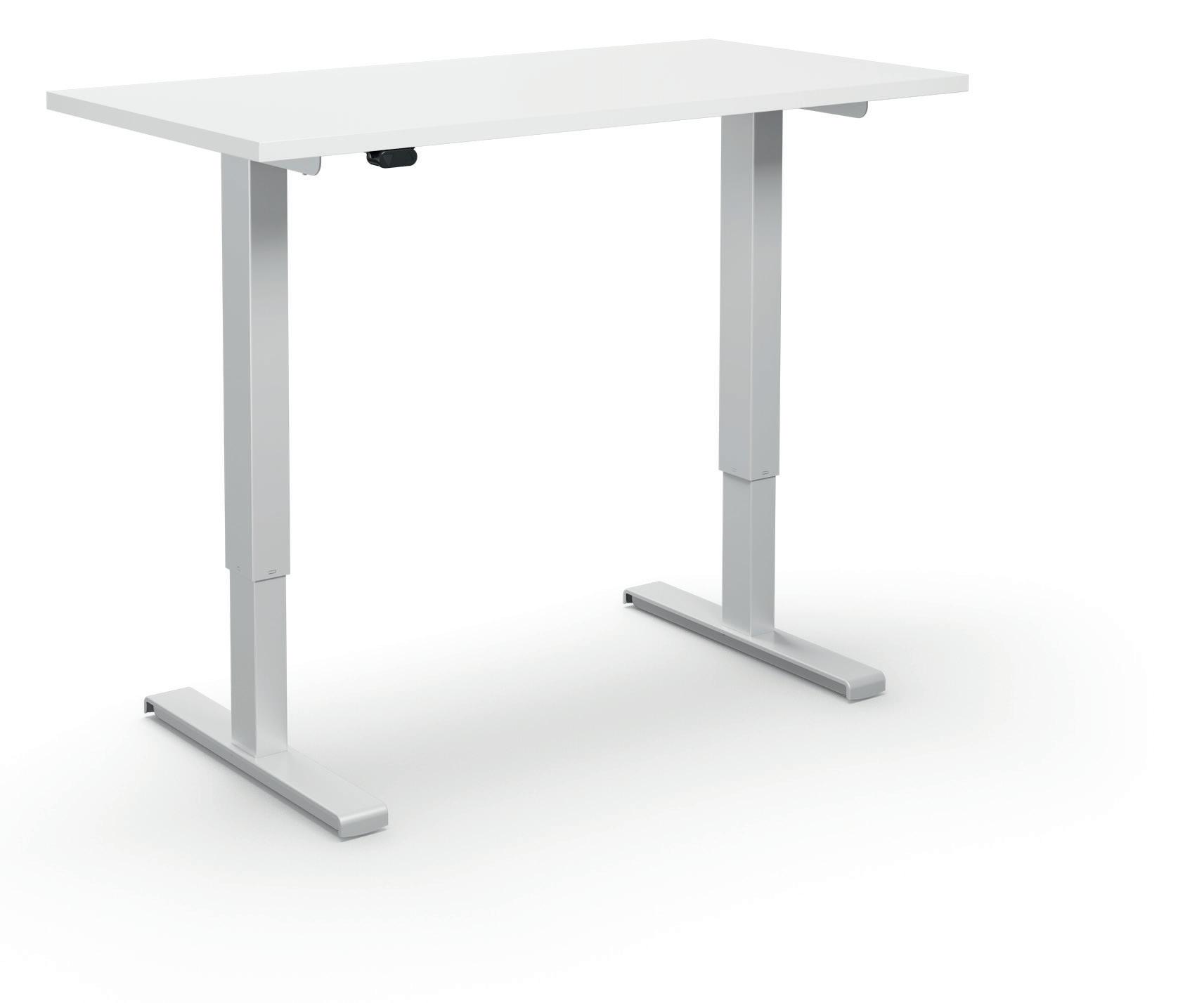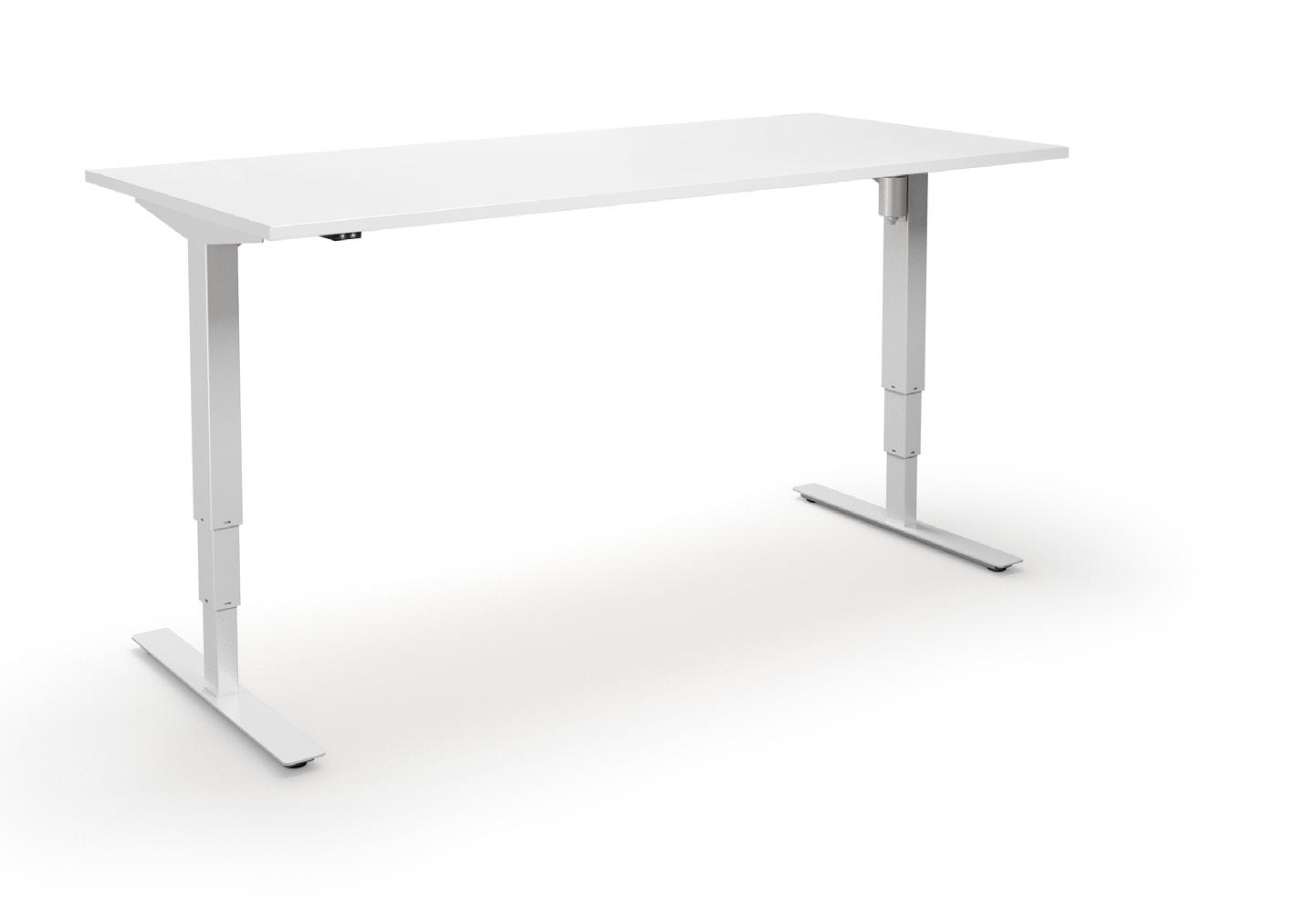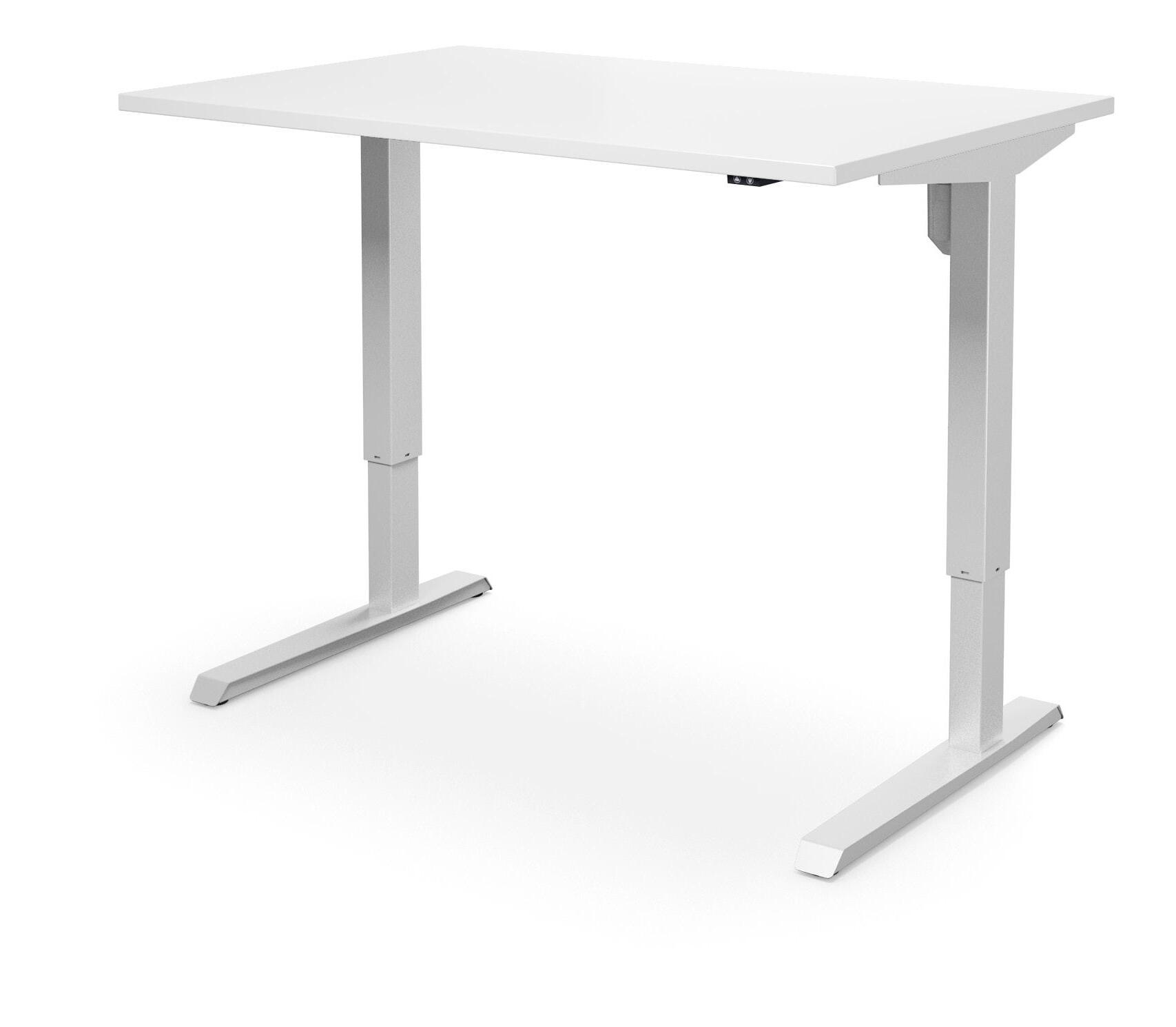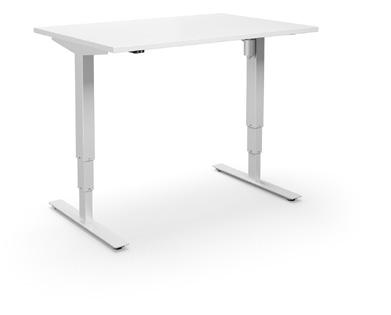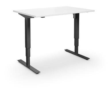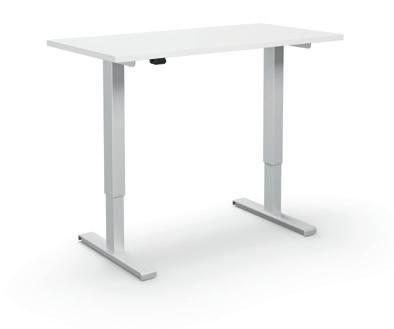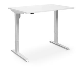 Værsgo og stå! Prisbilligt elektrisk skrivebord i moderne design med justerbar højde 685-1185 mm. Kan klare en belastning på 80 kg jævnt fordelt. Stel lakeret i hvidt. Bordpladen er lavet af laminat og fås i bøg, birk, eg, hvid eller mørkegrå.