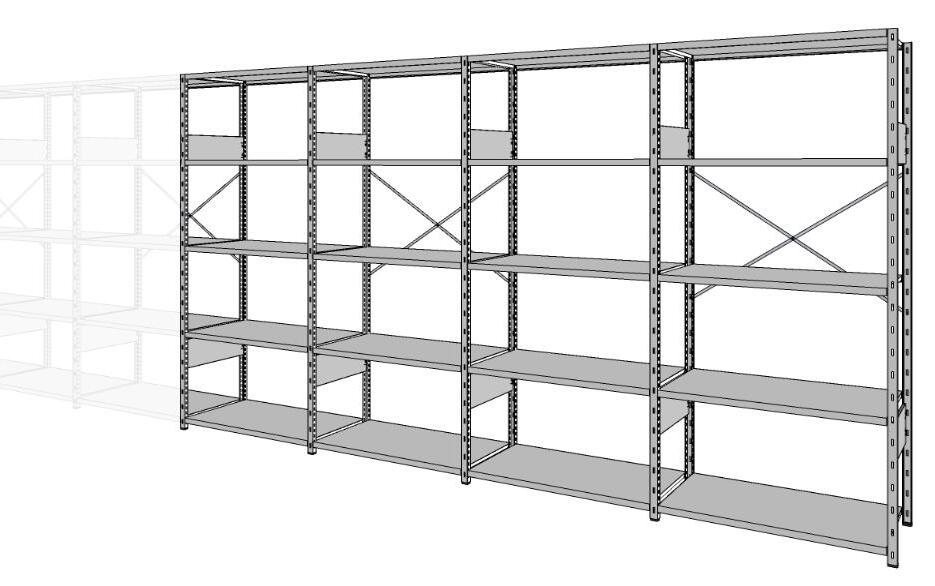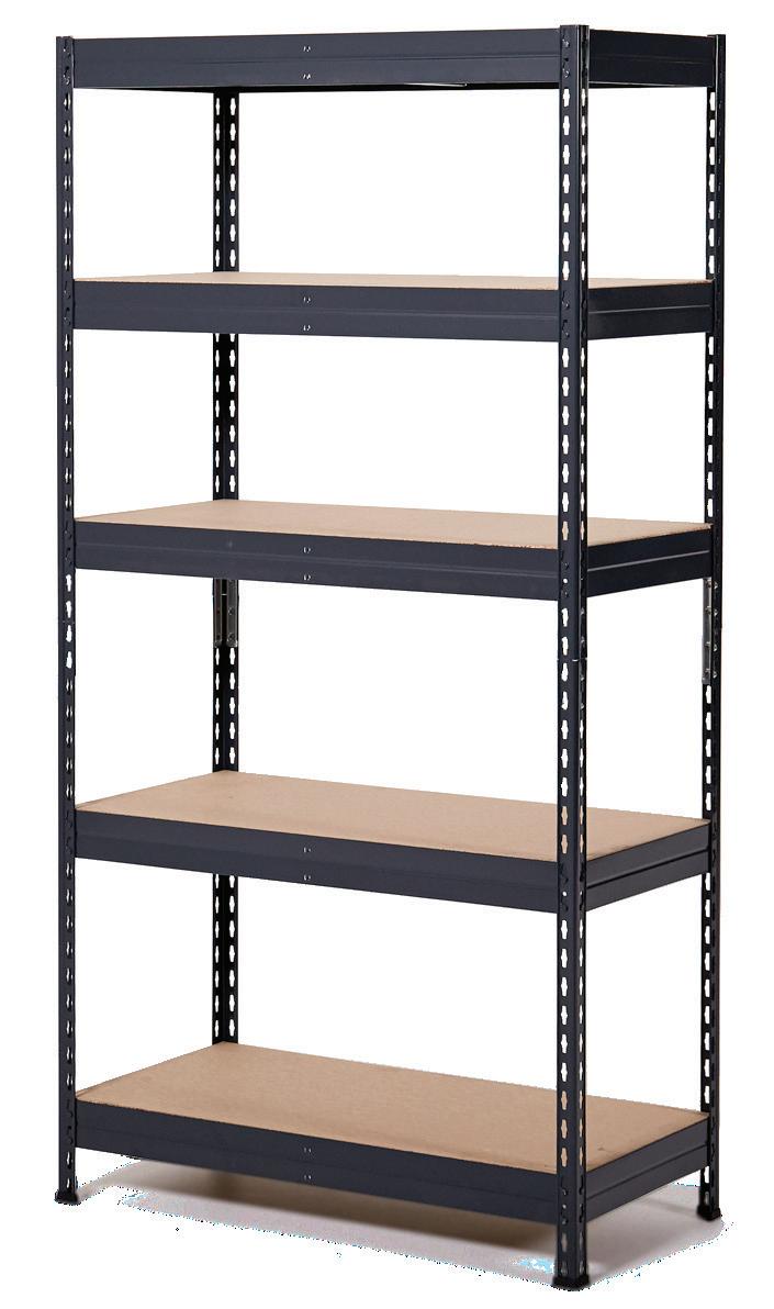 Stabil stålreol med aftagelige træfiberhylder med forstærkningsbjælker. Nem at samle, helt uden skruer, med flere kombinationsmuligheder.