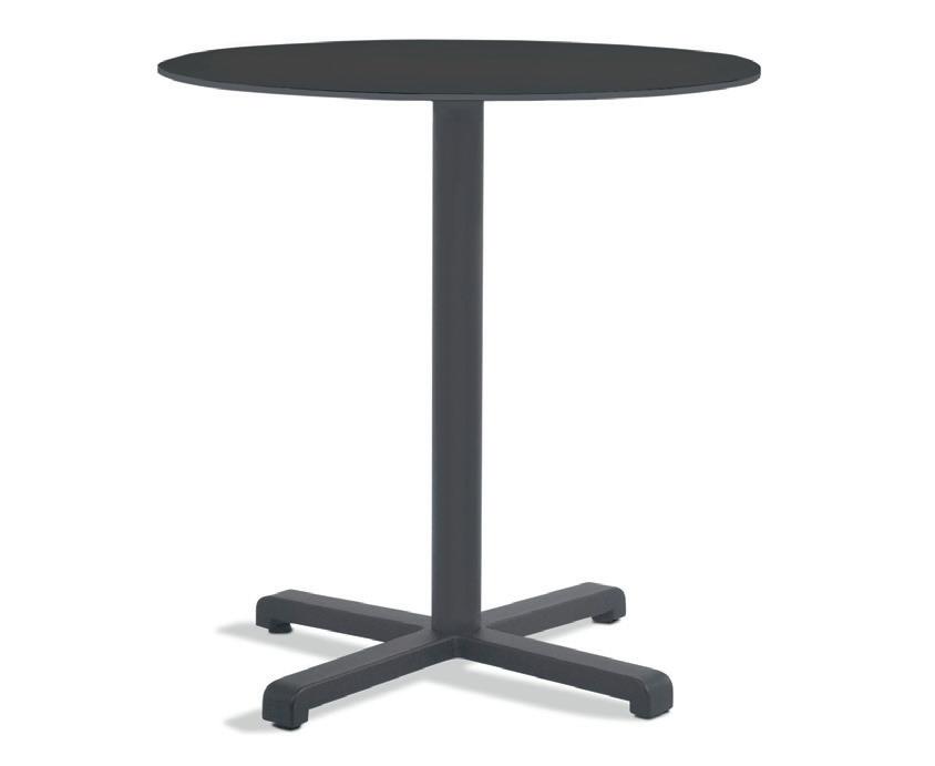 Cafébord Jill passer til afslapning, både inde og ude. Pulverlakeret stålstativ, justerbare fødder for ujævne overflader, bordplade i hvid eller antracitlaminat. Fås i flere størrelser og former.