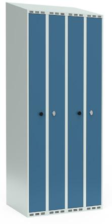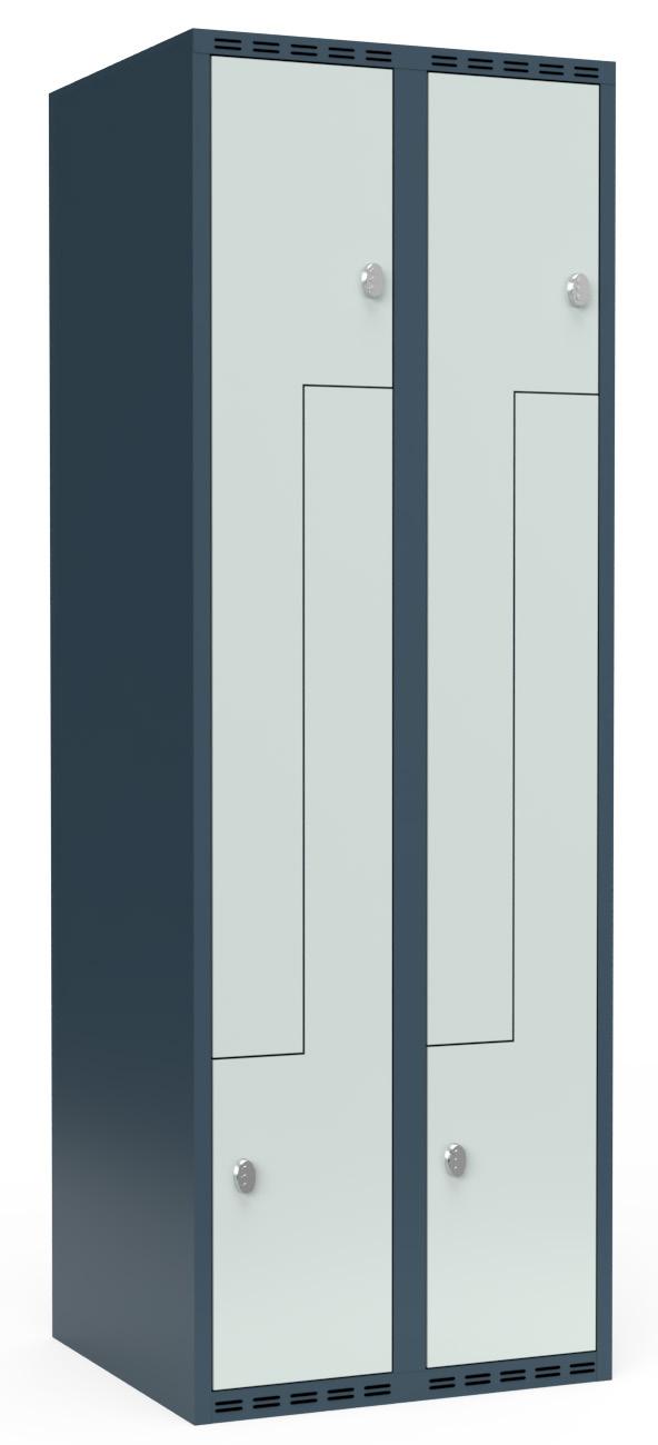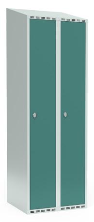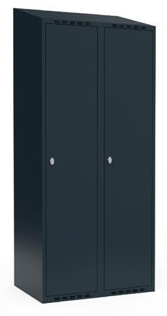 Fuldsvejset kvalitetsskab i moderne design til alle miljøer. Dørene har dobbelte forstærkninger, gummidæmper og svejset dørstop. Gennemtænkt ventilation med god luftgennemstrømning og glat bund der gør skabet er nemt at rengøre. Låsbar med klinke til hængelås som standard. Fås i flere dimensioner, farver, stel og tilbehør.