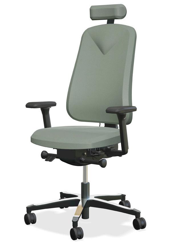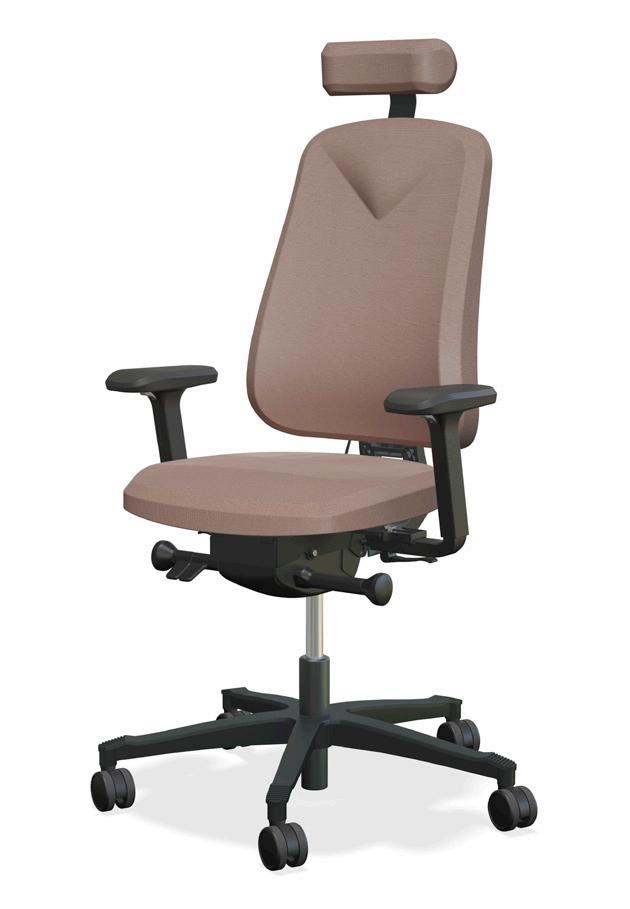 Mukava toimistotuoli, useita säätömahdollisuuksia. Säädettävä niskatuki, ristiseläntuki pumpulla. Istuinta voi säätää eteenpäin ja myös syvyys on säädettävissä. Jalkaristikko alumiinia. Toimitetaan säädettävillä 4D käsinojilla ja pyörillä koville alustoille. Testattu ja hyväksytty EN-1335 mukaan.