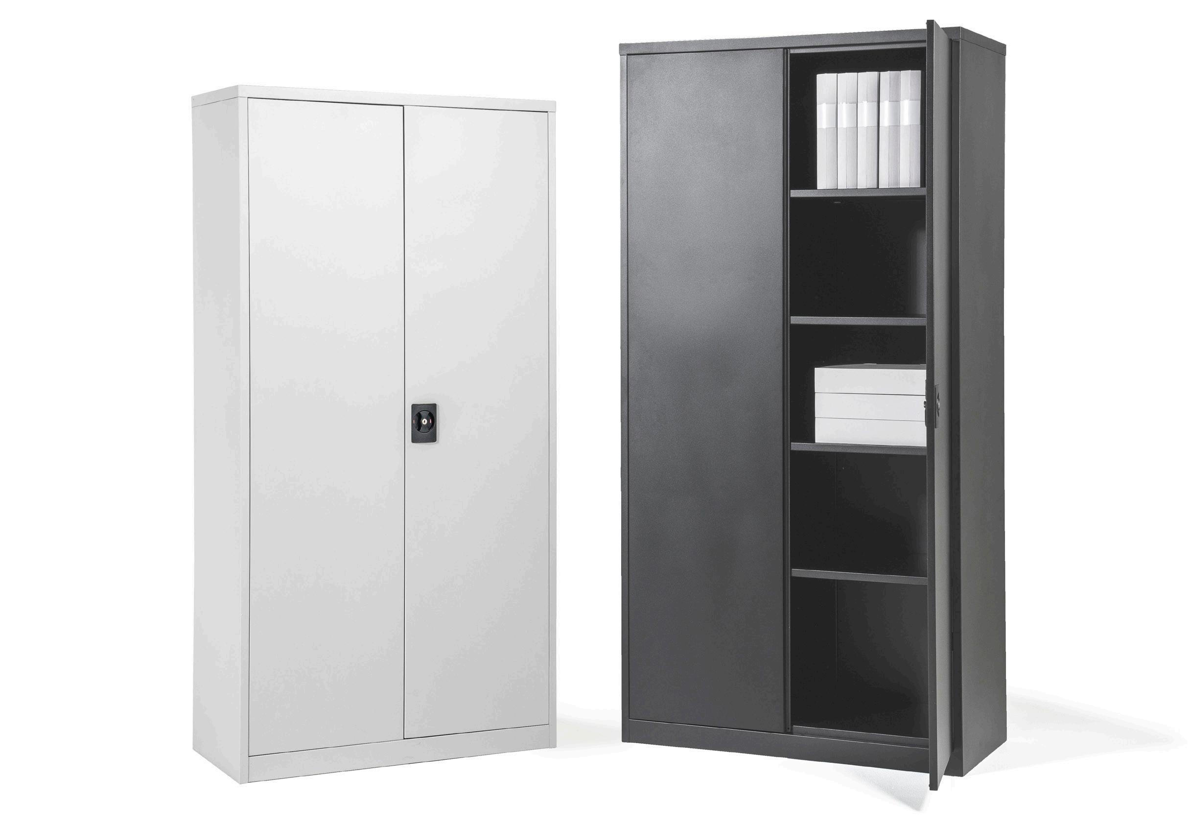 Hyvän hinta-laatusuhteen omaava säilytyskaappi toimistoon, varastoon tai korjaamoon. Jauhemaalattu ja naarmunkestävä viimeistely. Ovissa ääntä vaimentavat liitososat. Kestää 45 kg hyllytasoa kohden tasaisesti levitettynä. Toimitetaan neljällä siirrettävällä hyllytasolla ja pitkäsalpalukolla kahdella avaimella. Saatavilla harmaana ja mustana.
