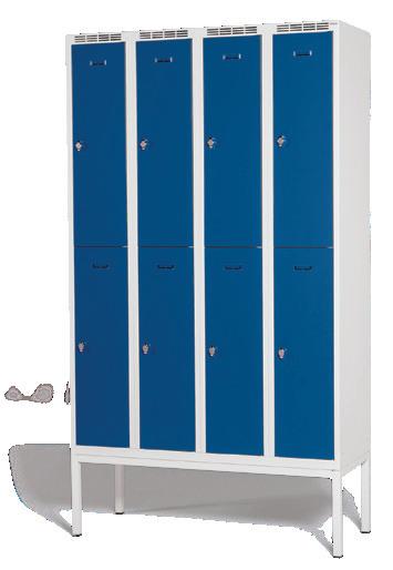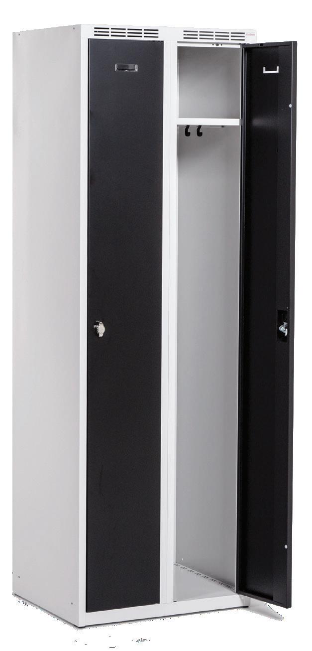 Fuldsvejset kvalitetsskab i moderne design til alle miljøer. Dørene har dobbelte forstærkninger, gummidæmper og svejset dørstop. Gennemtænkt ventilation med god luftgennemstrømning og glat bund der gør skabet er nemt at rengøre. Låsbar med klinke til hængelås som standard. Fås i flere dimensioner, farver, stel og tilbehør.