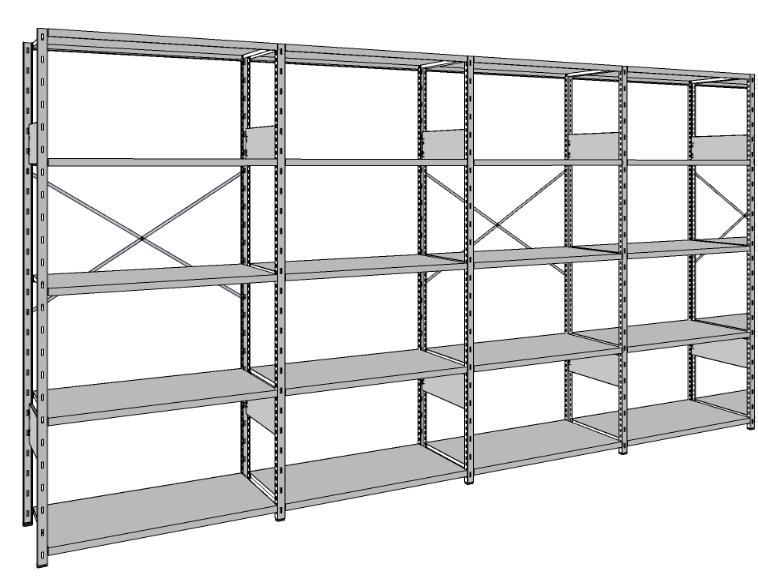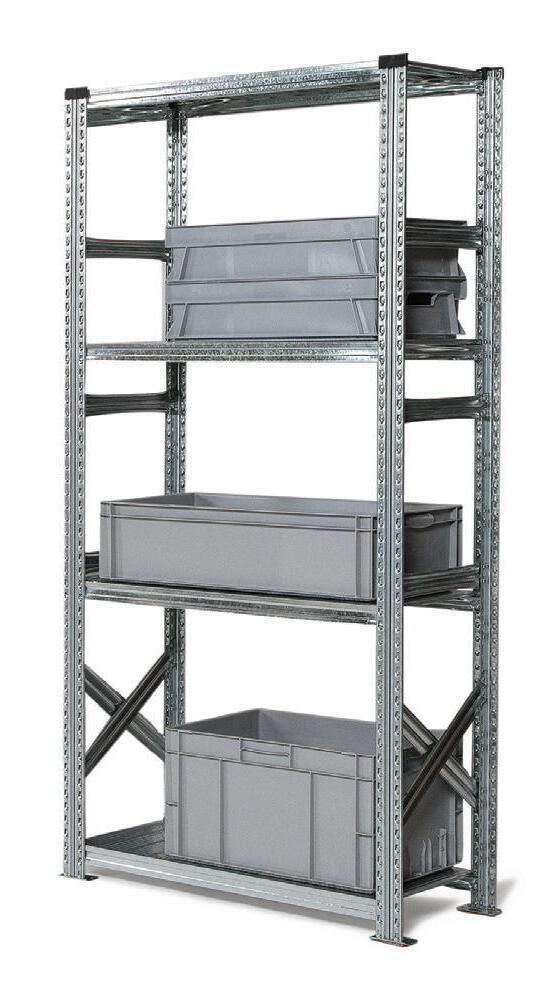 Fleksibel all-round reol med flytbare bærebjælker i galvaniseret stål med hylder til forskellige arbejdsmiljøer. Lav vægt, men kan klare høj belastning fra 135 til 350 kg. Gavle leveres samlet, bærebjælker og metalfødder er inkluderet i hver sektion.