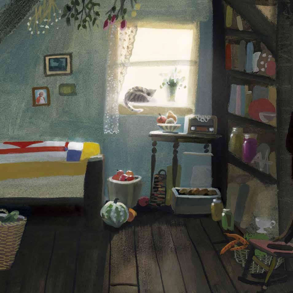 Casa sua trabocca di cibo del suo orto: in bagno ci sono vasetti di sottaceti, trecce d’aglio sono appese nella doccia, le rape sono sparse sulla scarpiera, i pomodori in veranda, le carote sulla sedia a dondolo, le mele in fondo al letto.