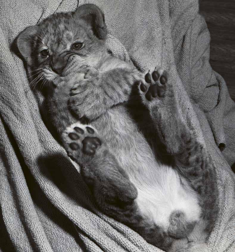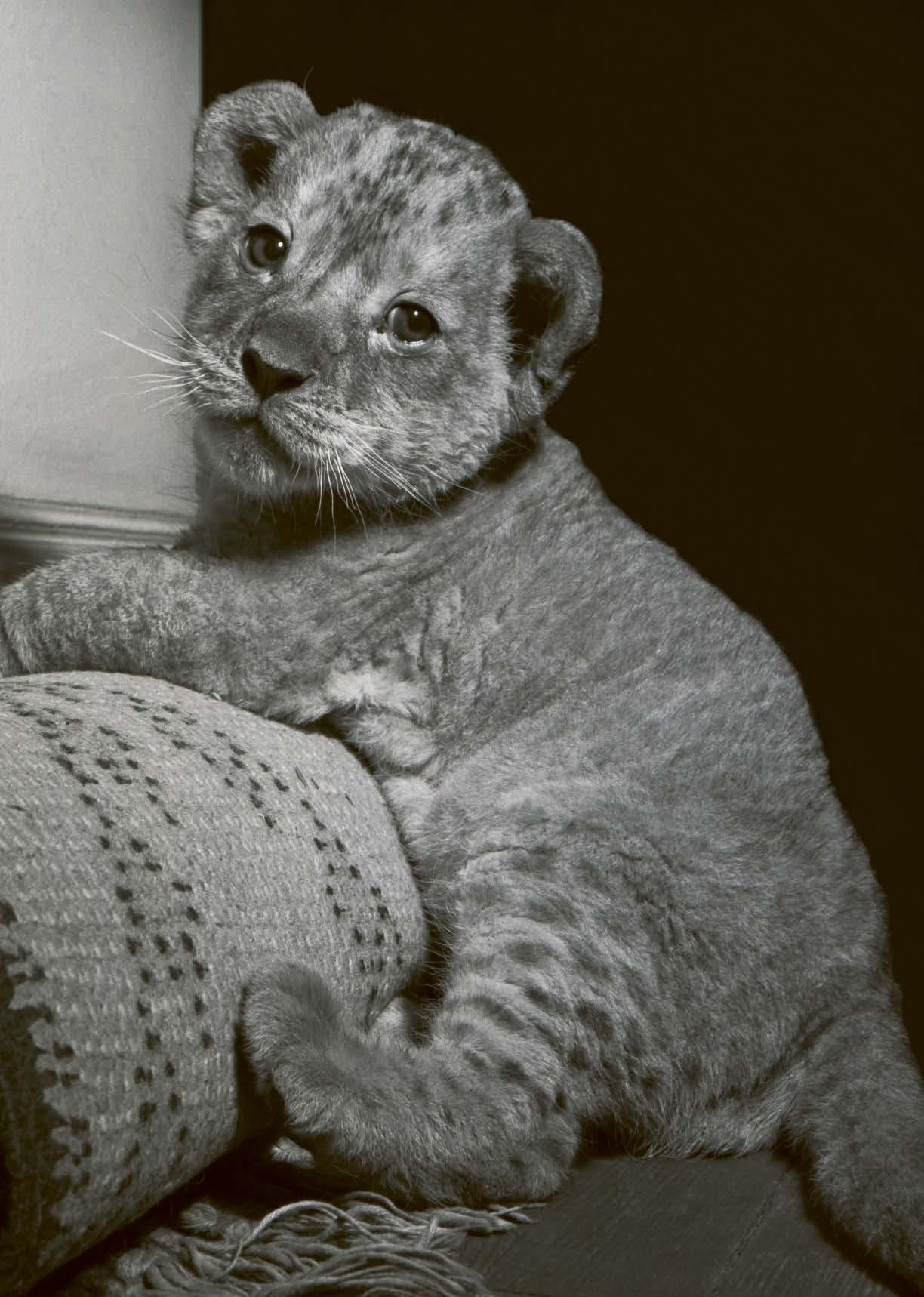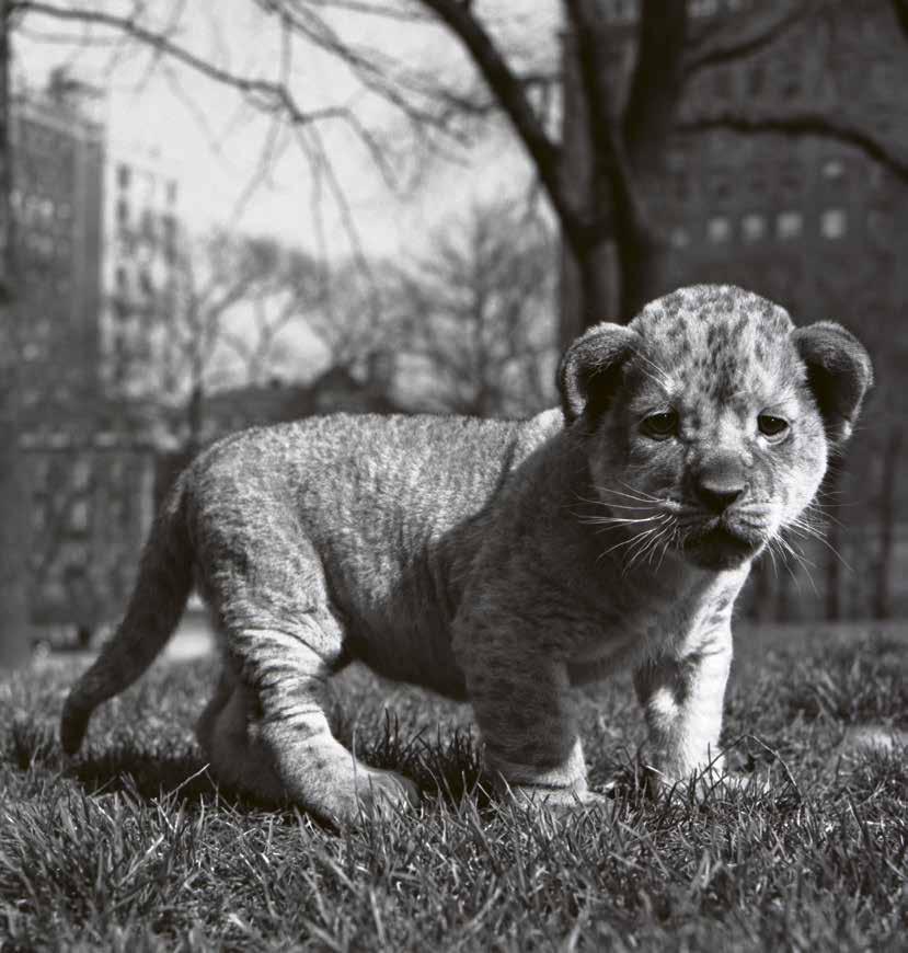 Si dice che bisogna sempre ascoltare la propria madre, ma forse il piccolo leone ha ascoltato un po’ troppo la sua, ed ecco perché in quest’immagine è tutto solo, sperduto nel bel mezzo del giardino pubblico. Approfittando di un istante di disattenzione dei custodi del serraglio, è scappato per andare a vedere gli Spazi Aperti, la foresta vergine, il deserto e la sorgente dove i leoni vanno a bere, è scappato per sentire il canto dei tordi beffeggiatori, gli uccelli che si burlano dei cacciatori, è scappato per vedere tutti gli uccelli dai diecimila colori. Ed eccolo sfinito per aver tanto corso, ma senza arrivare troppo lontano, mentre cala la notte e pallide luci si accendono nelle grandi fredde case della città, che levano verso un cielo senza stelle le loro miserabili carcasse di cemento armato.