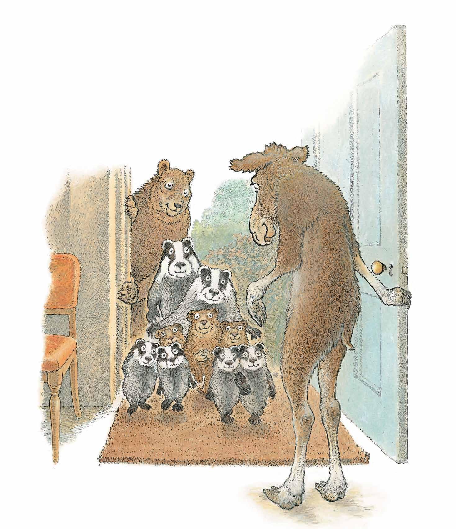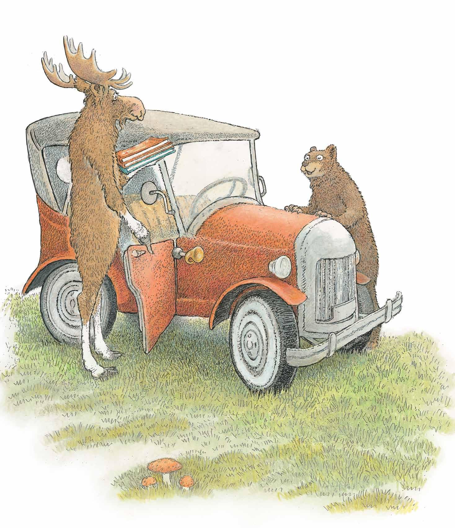 Così Alce andò a bussare alla porta accanto per chiedere in prestito a Orsa un libro di fiabe.