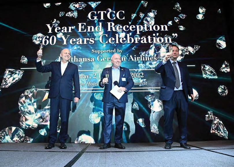More than 140 members, friends and guests celebrated the 60th anniversary of the foundation of the German-Thai Chamber of Commerce (GTCC) and the completion of 2022 at the GTCC Year-End Reception, “60 Years Celebration”, supported by Lufthansa German Airlines on 2 December 2022.
