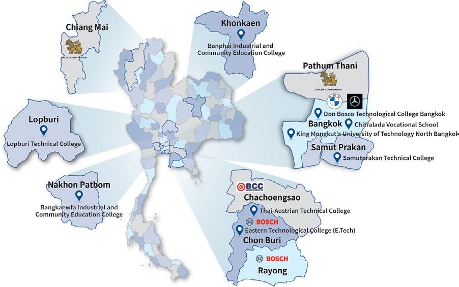 The GTDEE project was launched in 2013 by the GTCC and German International Cooperation (GIZ), in co-operation with founding companies B. Grimm, BMW Thailand Company Limited and Robert Bosch Thailand. The main objective was to introduce practices from Germany’s vocational education system and to produce skilled workforce with flexible qualifications.