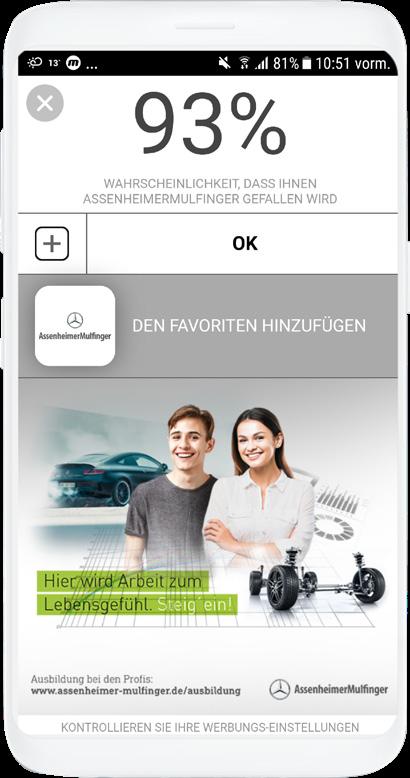 Aufgrund rückläufiger Bewerberzahlen wurde Gerryland beauftragt, eine Recruiting-Kampagne für AssenheimerMulfinger zu entwickeln, die innerhalb eines Radius von 45 km die potenzielle Bewerber-Zielgruppe im Alter zwischen 15 und 20 Jahren optimal erreicht.