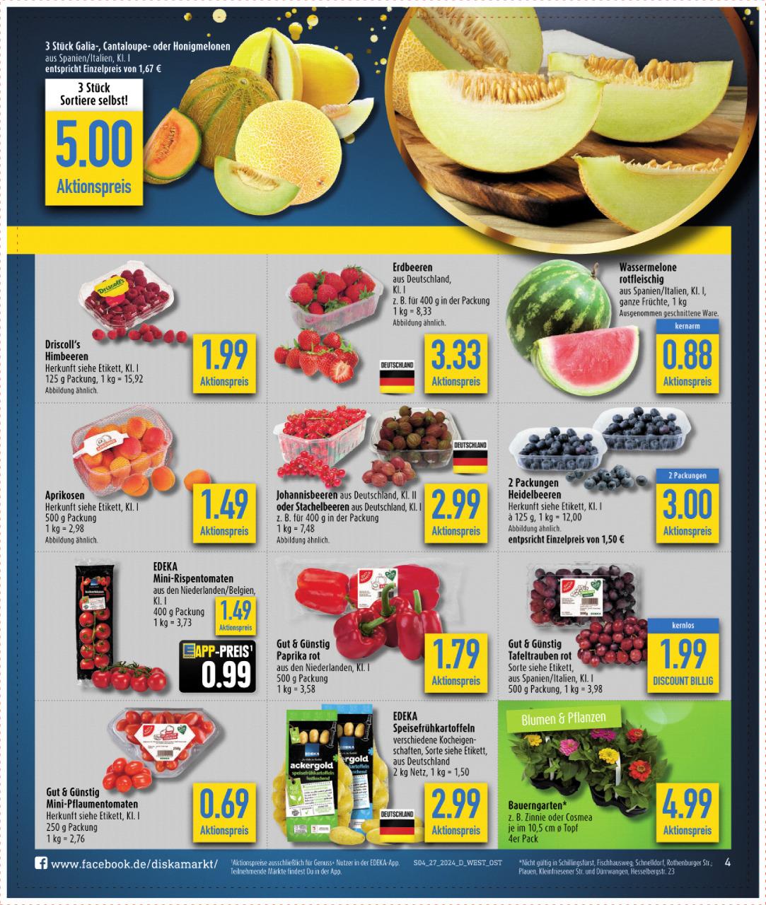 E-Mail: info@diska.de Name und Anschrift unserer regional tätigen Unternehmen findest du unter www. diska.de/marktsuche oder erfährst du über unsere Kundenhotline 0800-0033352. Wir informieren darüber, dass unser Kundenservice in Zusammenarbeit mit einem Call-Center Dienstleister betrieben wird. Unsere Datenschutzhinweise finden Sie unter www.edeka. de/nst. Ob die Angebote aus diesem Prospekt in deinem Markt gültig sind, erfährst du unter www.diska.de/prospekt. Alle Angebote gültig bis 06.07.2024, KW 27. Wir haben uns für diesen Zeitraum ausreichend bevorratet.