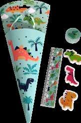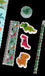 Inkl. Bleistift, Radiergummis, Lineal und Anspitzer. Dino- oder Einhorn-Motiv.