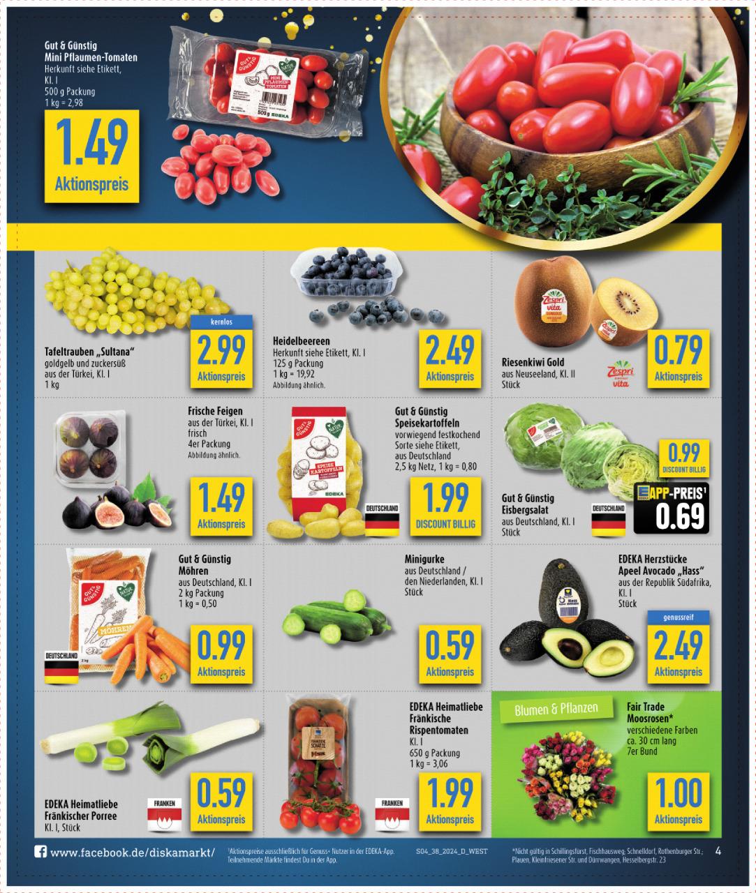 E-Mail: info@diska.de Name und Anschrift unserer regional tätigen Unternehmen findest du unter www. diska.de/marktsuche oder erfährst du über unsere Kundenhotline 0800-0033352. Wir informieren darüber, dass unser Kundenservice in Zusammenarbeit mit einem Call-Center Dienstleister betrieben wird. Unsere Datenschutzhinweise finden Sie unter www.edeka. de/nst. Ob die Angebote aus diesem Prospekt in deinem Markt gültig sind, erfährst du unter www.diska.de/prospekt. Alle Angebote gültig bis 21.09.2024, KW 38. Wir haben uns für diesen Zeitraum ausreichend bevorratet.