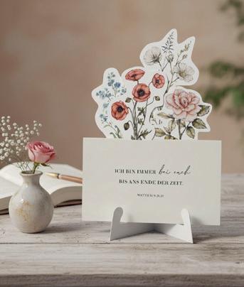 FÜRCHTE DICH NICHT – das ungewöhnliche Motiv zur Jahreslosung 2027 gestaltet vom Wortdesign-Studio. In einer Welt voller Unsicherheiten schenkt dieser Vers aus Jesaja 41,10 Hoff nung und Zuversicht: „Denn ich bin mit dir; hab keine Angst, denn ich bin dein Gott!“ Die sanfte Bildsprache trifft auf klare Typografie – ein stilles, aber starkes Statement für Vertrauen und Glauben. Hinter dem Design stehen Stefanie „Stennie“ Krel, Maggy Melzer und Nelly Voth. Maggy ist die visuelle Expertin und Fotografi n mit einem besonderen Blick für Schönheit. Nelly ist Grafi kerin mit Sinn für minimalistisches Design. Stennie bringt kreative Ideen und unternehmerischen Mut im Team ein.