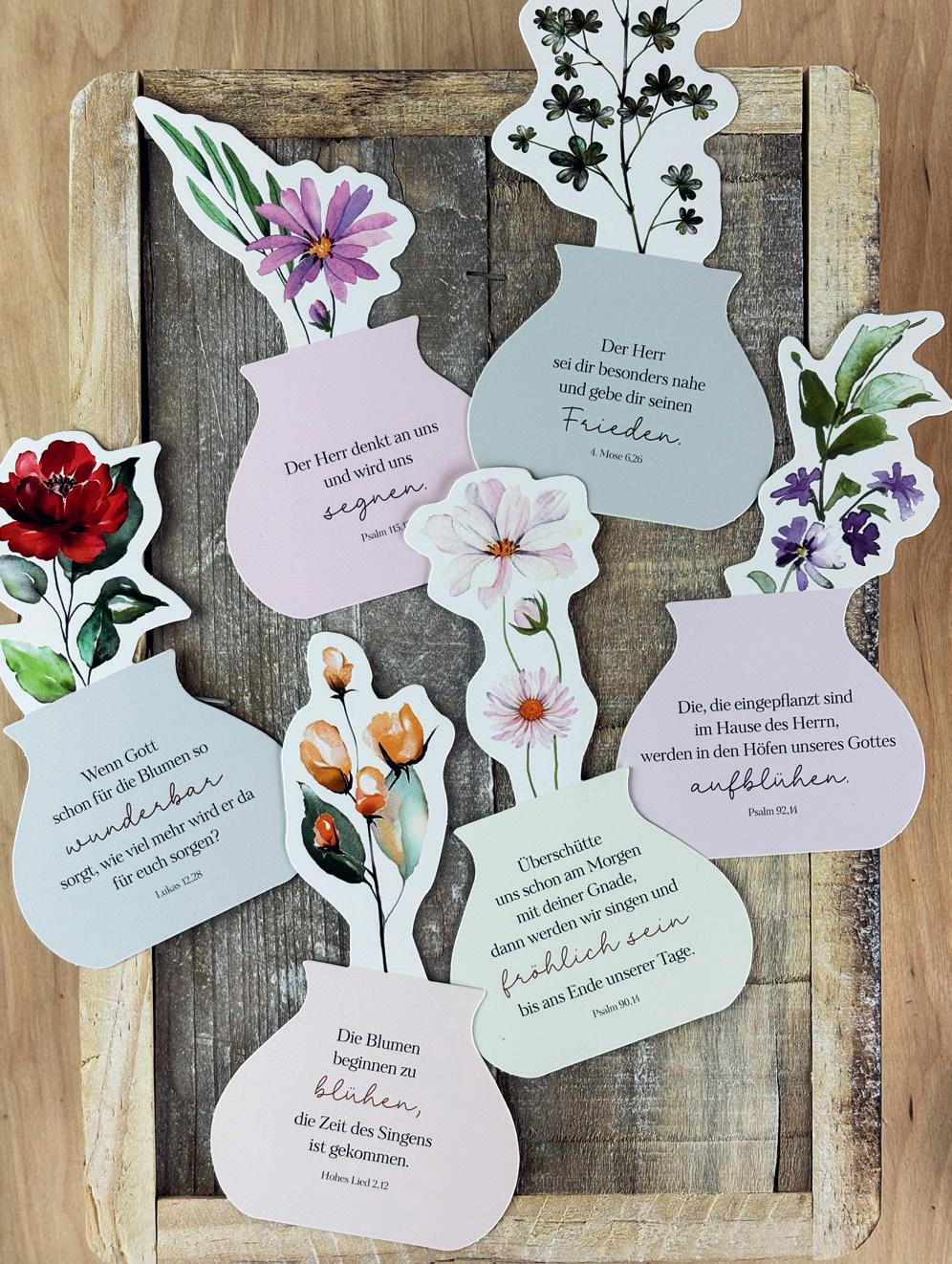 Diese gedruckten Blumengrüße verblühen nicht. Sie stammen aus dem Set Ein Strauß voller Segen. 14 liebevoll gestaltete und gestanzte Karten.