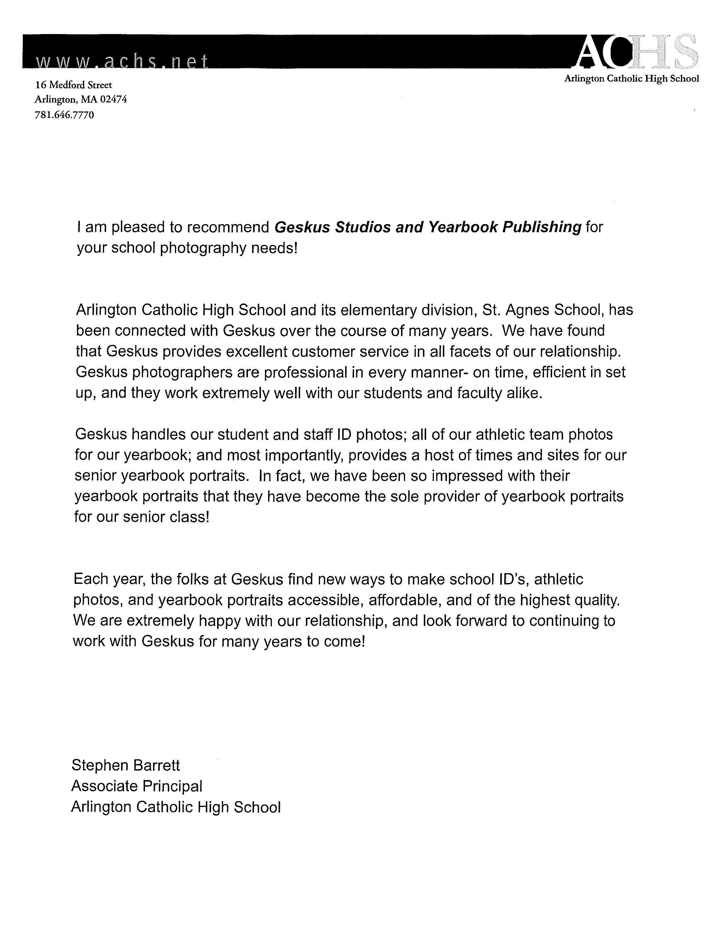 Arlington Catholic High School 16 Medford Street Arlington, MA 02474