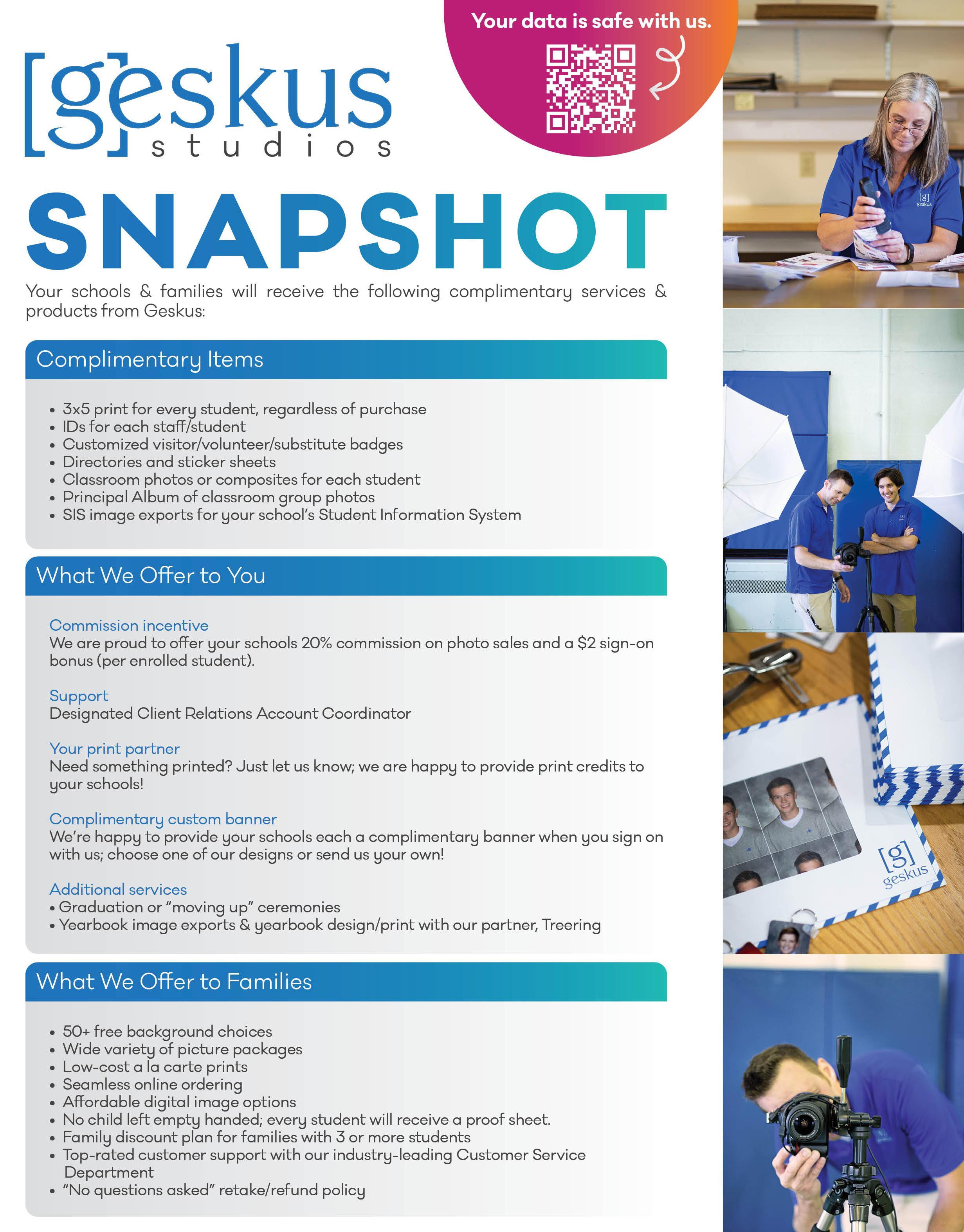 At Geskus, we make picture day simple, professional, and fun-backed by a dedicated team of account coordinators, customer service representatives, and highly trained photographers.