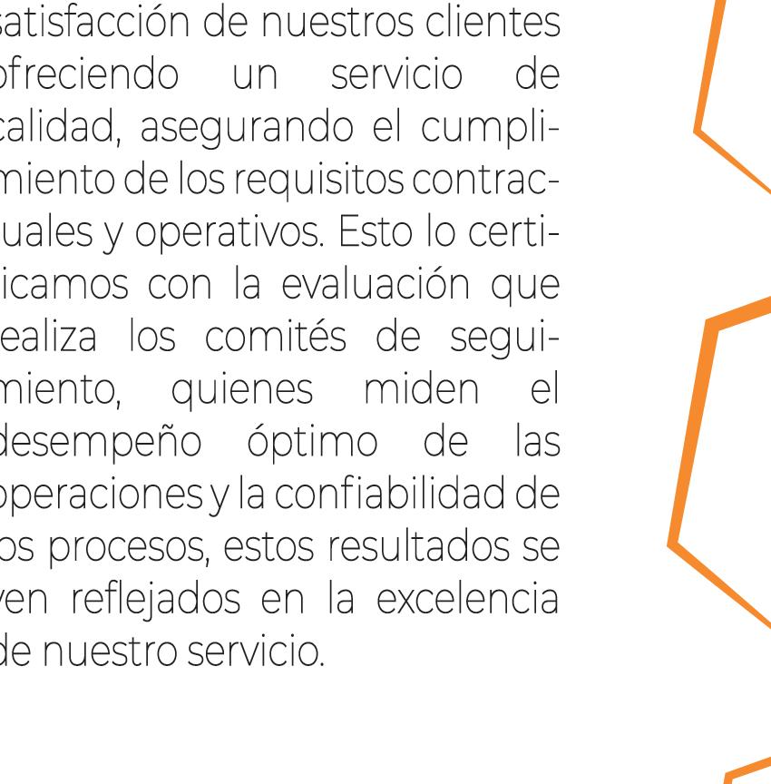nacional, con personal competente y cumpliendo con las regulaciones federales a través del desarrollo de nuestro sistema de calidad y seguridad enfocado a la satisfacción de nuestros socios comerciales, generando mayor infraestructura y desarrollo tecnológico.
