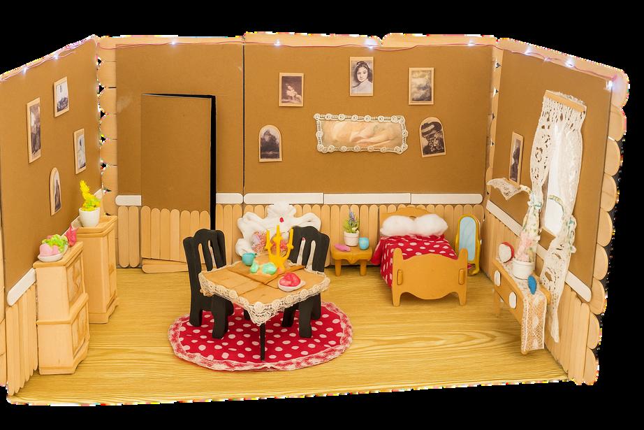 Imadethemodelof"Thestage",intheaterclass,in which the teacher presented us with a play and we, the students, had to create a set based on it. The play is titled "Contigo aprendí" (With You I Learned), and it's about an elderly lady; so we see that the set has an antiquestyle.Inthisproject,Ilearnedtoworkwithscale measurements. It was quite challenging, but you learn something new every day. I really enjoyed creating this model and every time I worked on it, I put all my effort and dedication into it. I realize more and more that my passionisdesign,creation,andelaboration.