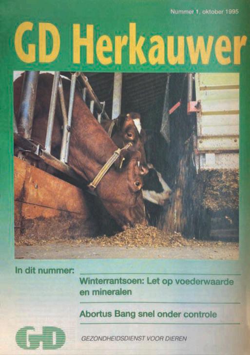Herkauwer is een uitgave van Royal GD Redactie Vera Bolink, Jet Mars, Arjan Pakkert, Debora Smits | Eindredactie Jessica Fiks | Redactieadres Royal GD, Marketingsupport & Communicatie, Postbus 9, 7400 AA Deventer, T 088 20 25 500, redactie@gddiergezondheid.nl, www.gddiergezondheid.nl | Productiecoördinatie Senefelder Misset Doetinchem B.V. | Basisontwerp Studio Kaap | Vormgeving Dock35 Media B.V. | Druk Senefelder Misset Doetinchem B.V. | Abonnementen Herkauwer wordt gratis toegezonden aan relaties van Royal GD. | Advertenties Dock35 Media B.V., T. 0314 - 35 58 00 | Verschijningsfrequentie drie keer per jaar | Suggesties Suggesties voor dit blad kunnen worden doorgegeven via redactie@gddiergezondheid.nl. Overname van artikelen is toegestaan uitsluitend na toestemming van de uitgever. | Disclaimer Royal GD en de redactie zijn niet verantwoordelijk en daardoor niet aansprakelijk voor de inhoud van de geplaatste advertenties en advertorials.