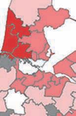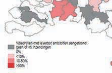 Het percentage bedrijven met veel antistoffen tegen leverbot in de tankmelk schommelde een aantal jaren geleden rond de 20 procent, de laatste vijf jaar tussen de 5 en 10 procent. Dit jaar werden op 8 procent van de bedrijven antistoffen tegen leverbot aangetoond en dit percentage blijft daarmee dus stabiel. Zie guur 2 voor de regionale verschillen.