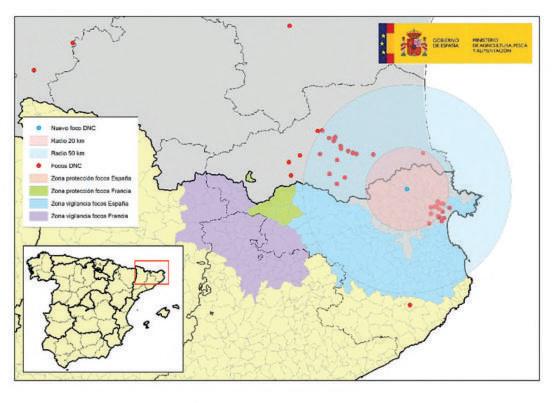 foco se localiza en una explotación en régimen extensivo, con pastos de uso individual y censo de 106 bovinos en la comarca Alt Empordà, en la provincia de Gerona. La vacunación de la granja tuvo lugar el pasado mes de octubre, si bien, debido a la dificultad manejo de este tipo de animales no se consiguió vacunar a la totalidad del censo, resultando 4 de los animales no vacunados positivos a la cepa de campo del virus de la mediante PCR realizado en el Laboratorio Nacional de Referencia en Algete.