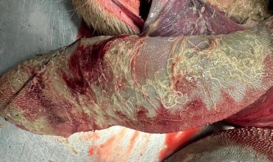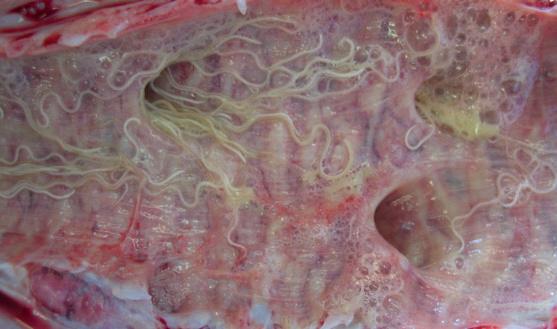 tussen 13 en 24 maanden, terwijl longworm doorgaans vaker voorkomt bij jongere dieren in hun eerste weideseizoen. Daarnaast waren de infecties ernstig tot zeer ernstig, met veel volwassen wormen in de longen en luchtpijp. Dit sluit aan bij
