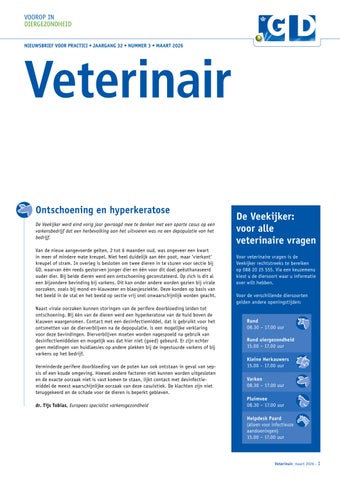 Dierenartsen ontvangen maandelijks Veterinair , een waardevolle bron van informatie, waarin deskundigen van GD ingaan op actuele dierziekten. Veterinair heeft een oplage van 3.400 gedrukte exemplaren.