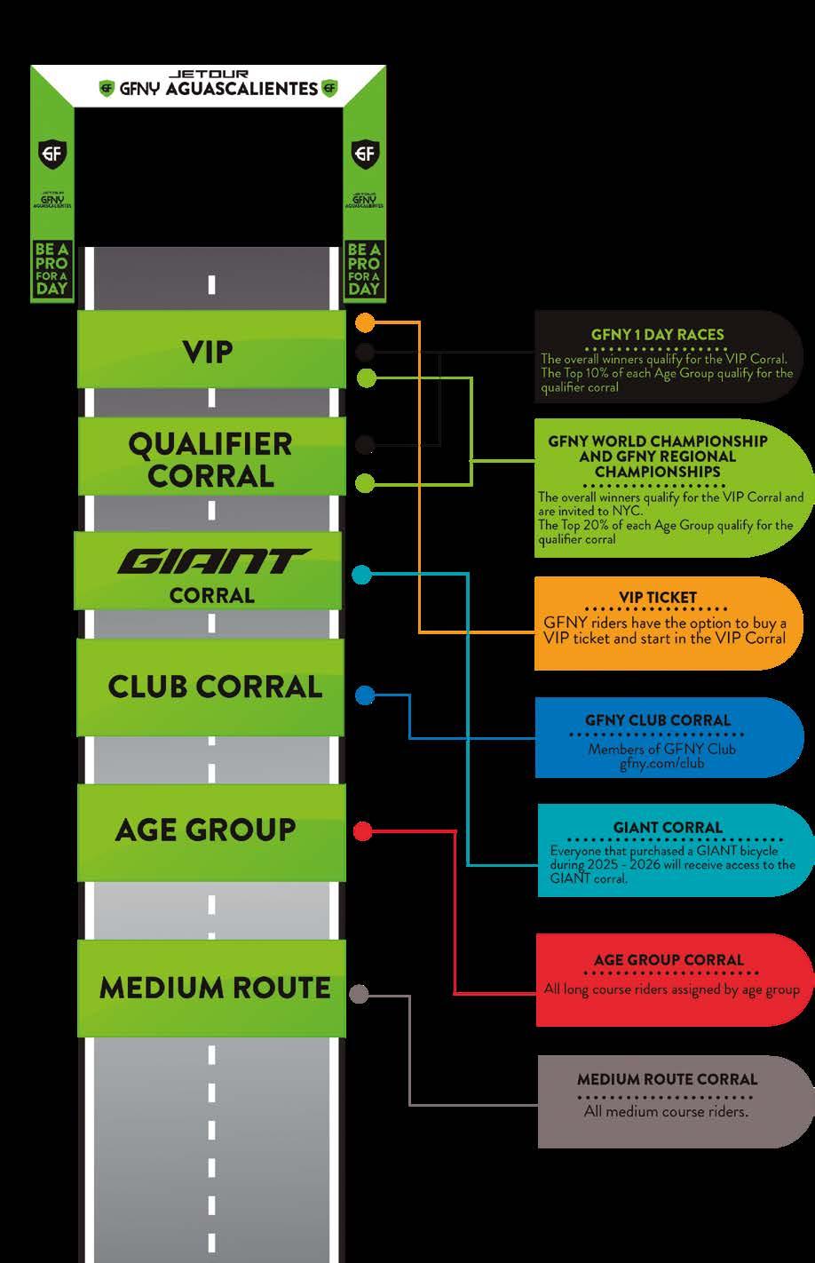 Asegúrate de leer las reglas de la carrera, que se encuentran en https://gfny. com/cycling-rules/ para familiarizarse con ellas.