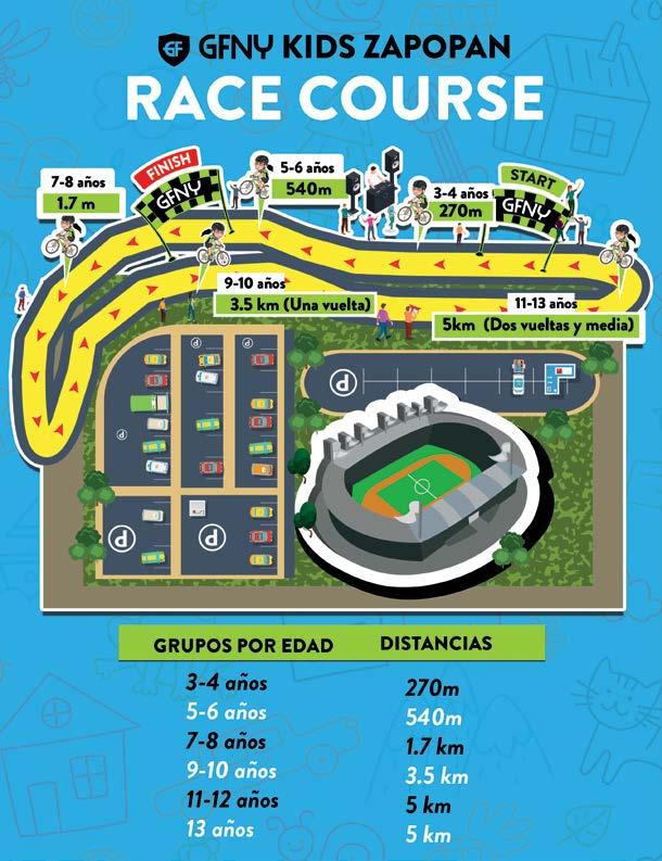 GFNY Kids Zapopan comenzará el 30 de septiembre a las 8:00 am. Todos los grupos de edad deben estar en el área de inicio 30 minutos antes para comenzar la instrucción. Cada grupo de edad competirá por separado una vez que el grupo de edad anterior haya terminado la carrera.
