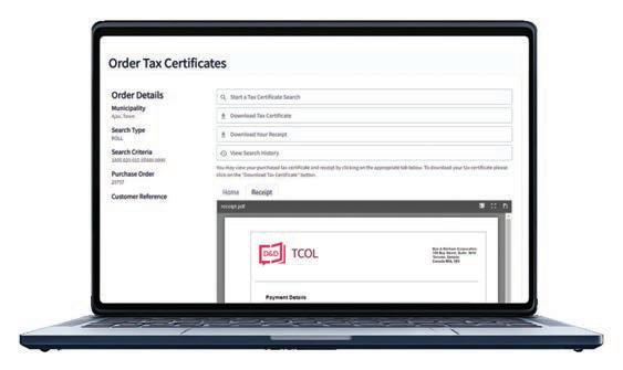 For municipalities advancing digital transformation initiatives, tax and utility certi cate processing is a practical and measurable starting point. It is visible, high impact, and essential to the success of real estate transactions. Adopting an integrated digital solution for tax and utility certi cate processing allows municipalities to improve service delivery and reduce administrative strain while maintaining scal discipline.