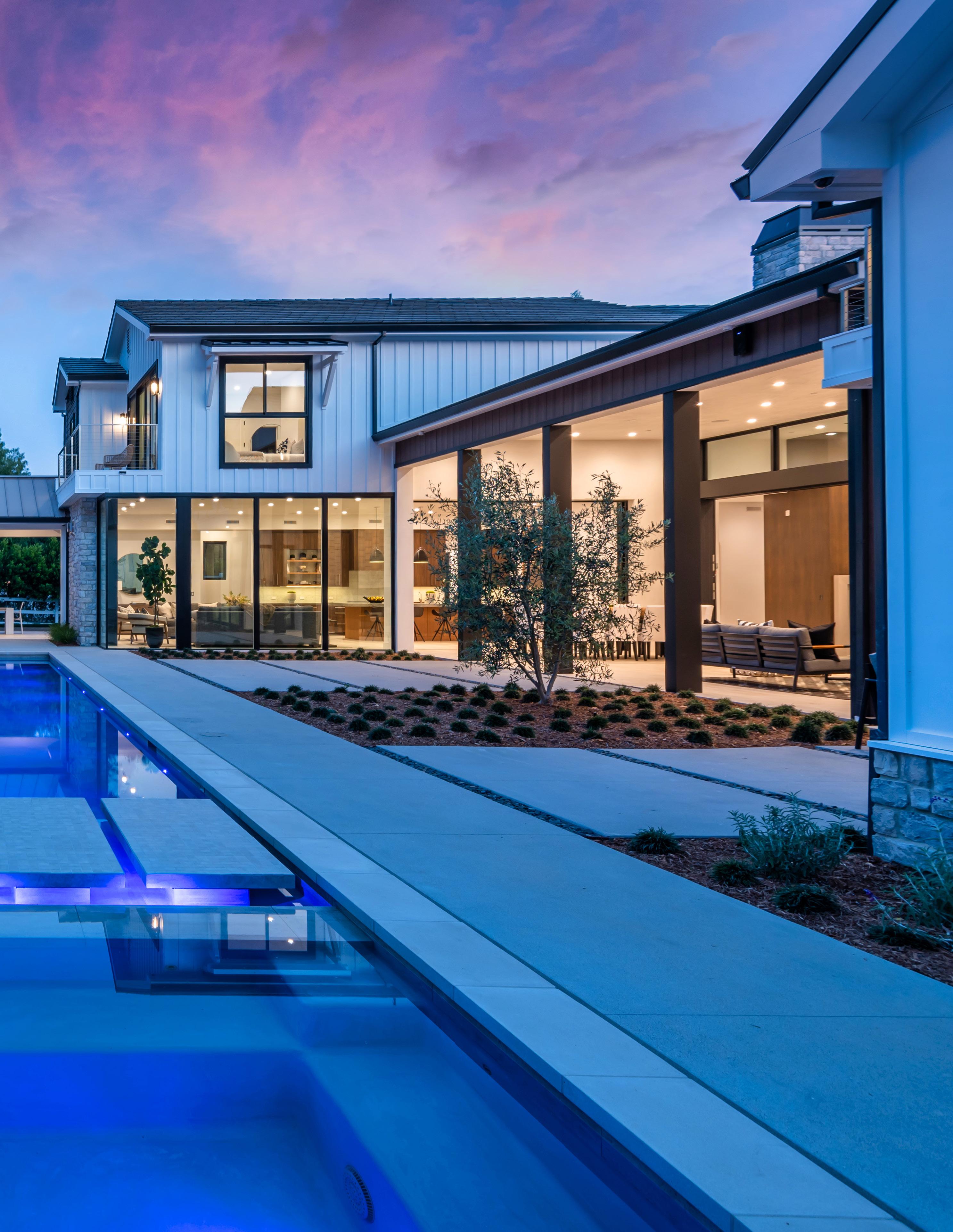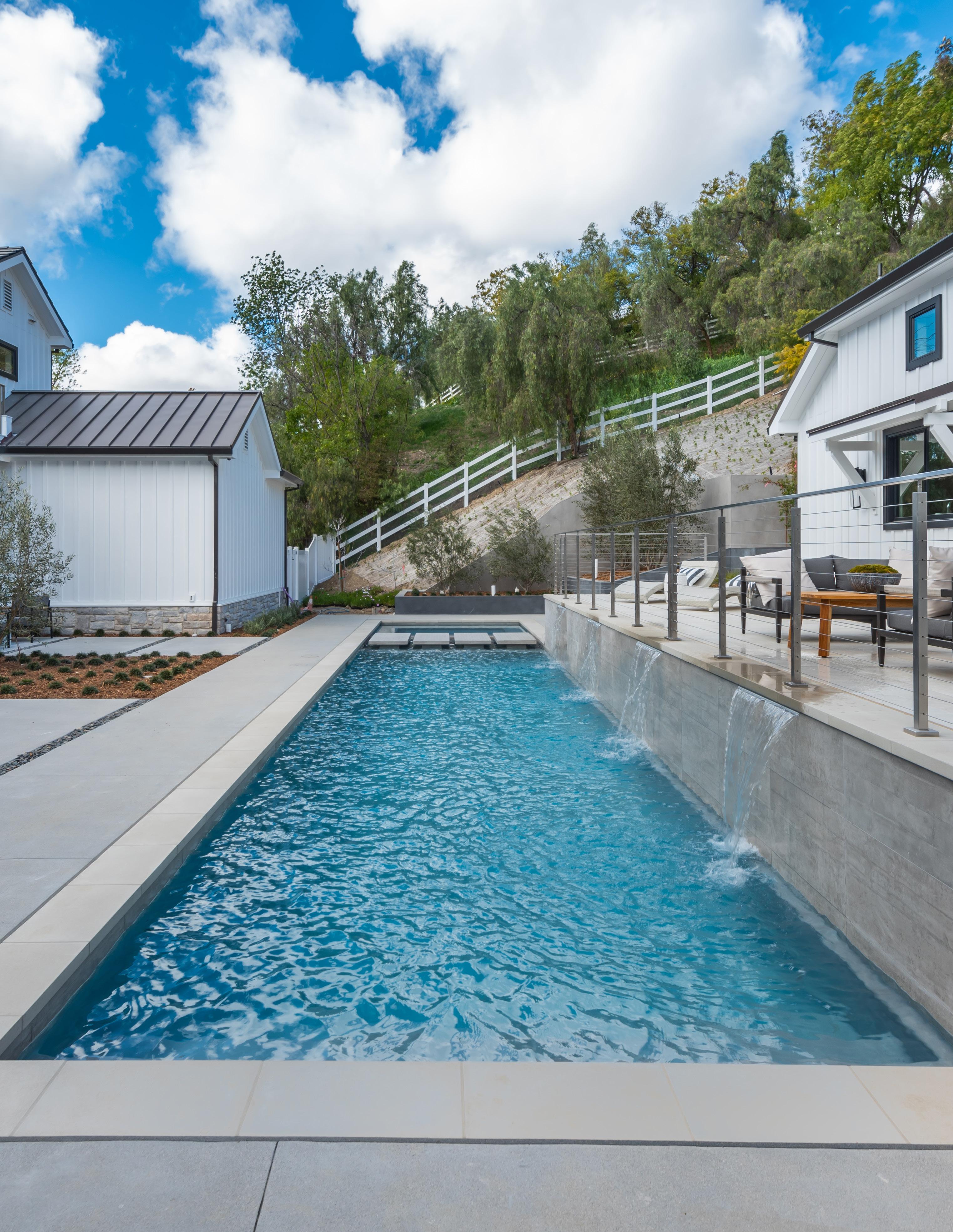 Experience the gorgeous Southern California weather with luxury amenities, such as a lap pool and oversized spa and various seating for lounging and dining.