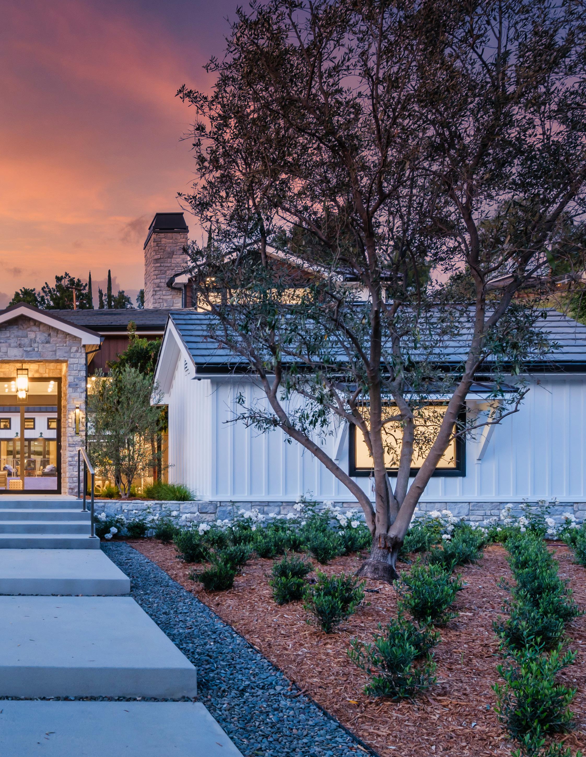 The manicured grounds feature a sparkling lap pool with sheet waterfalls, oversized spa, fire pit, and 19 fruit trees of various varieties planted around the property.