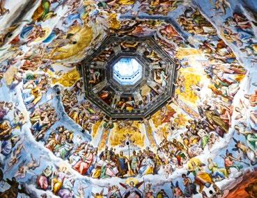 1 BELLEZA La catedral de Florencia, con su fachada rigurosamente simétrica, es uno de los edificios más emblemáticos del Renacimiento italiano. 2 OBRA MAESTRA Los frescos de la célebre cúpula de Brunelleschi representan escenas del juicio final. 3 REFUGIO La antigua residencia de campo de la familia Médici, a orillas del río Arno, alberga hoy en día el lujoso hotel de cinco estrellas Villa La Massa. 4 TRADICIÓN