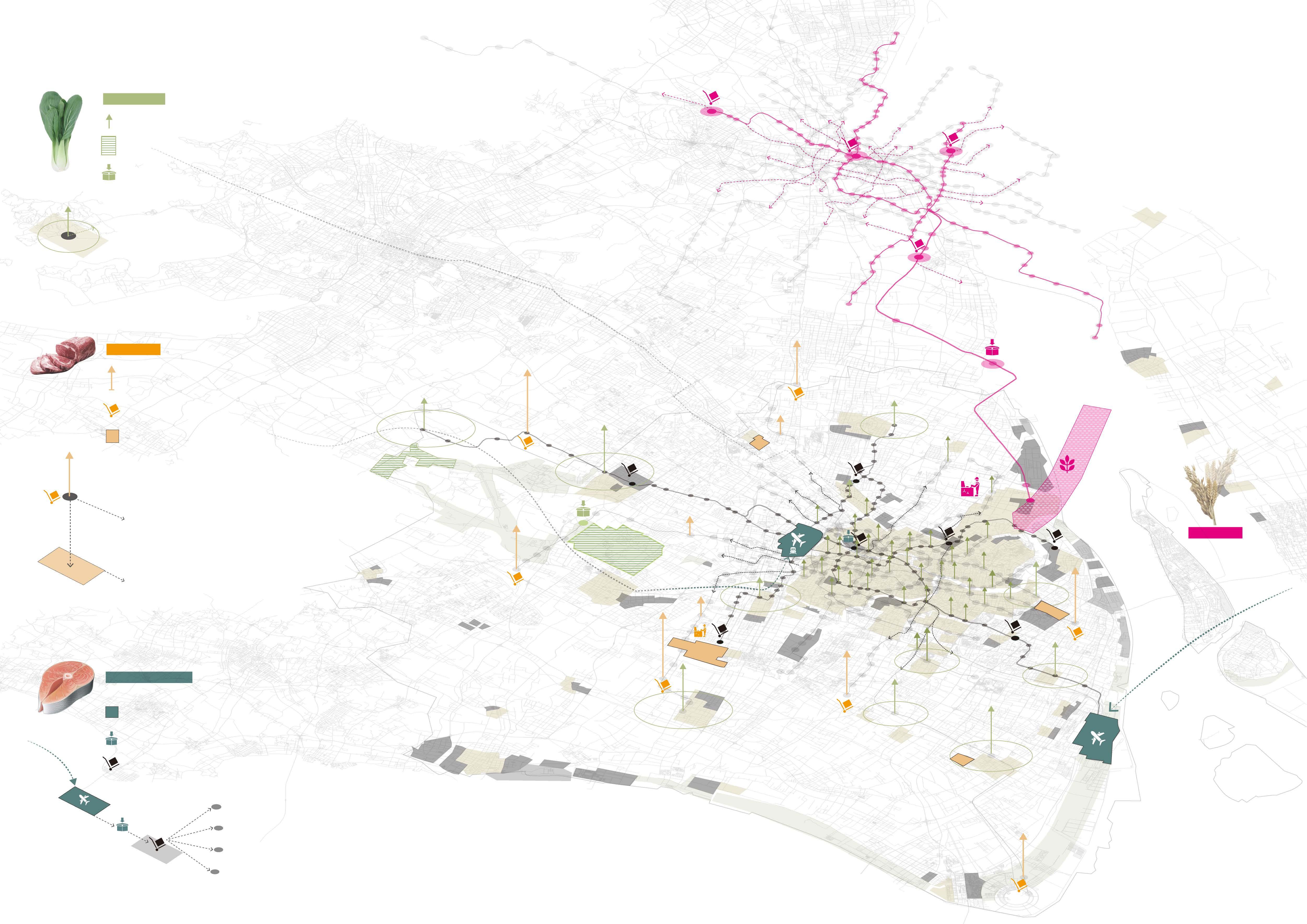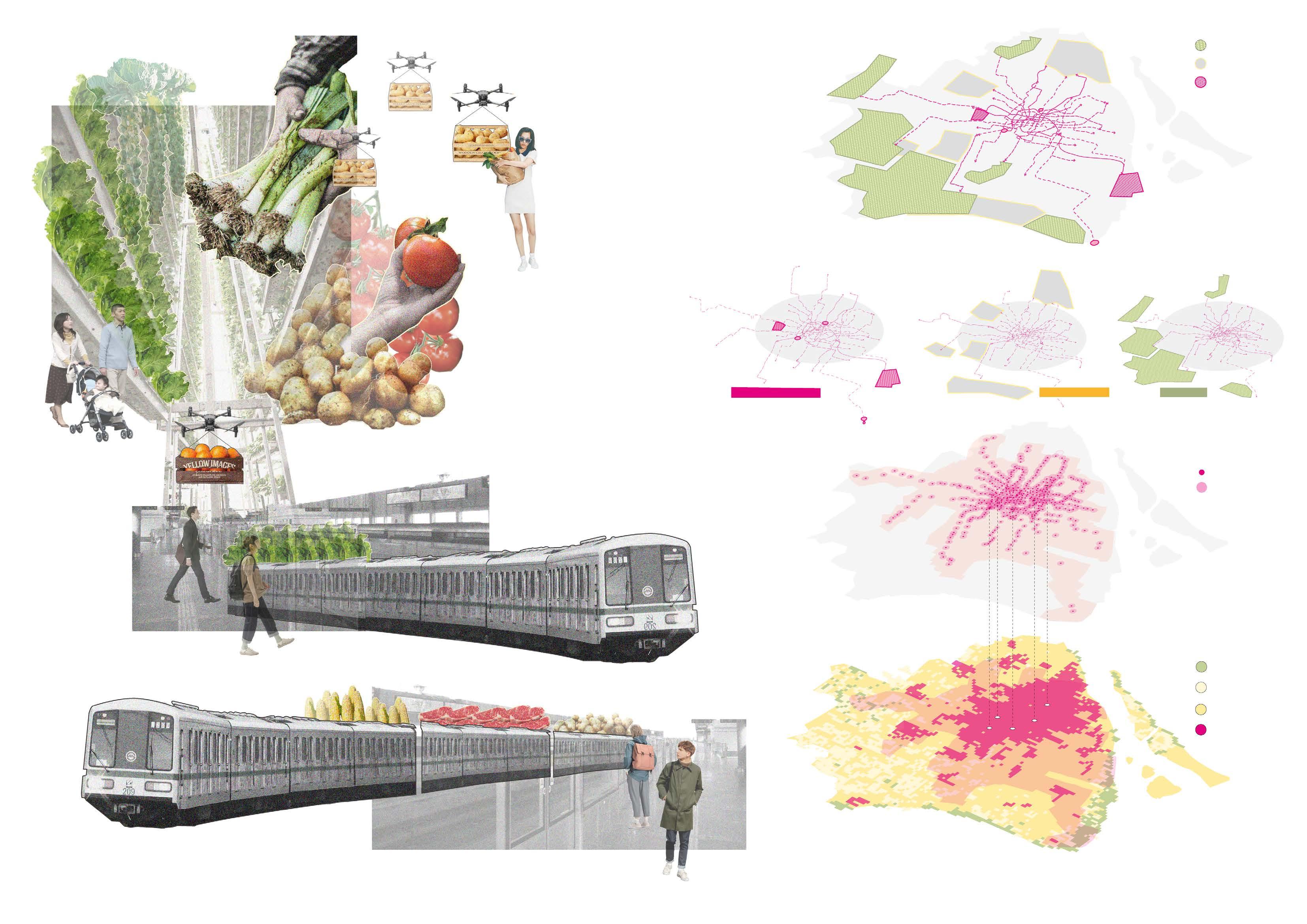 As arable land continuesly shrink due to urban area's expansion, we are facing the problem of food shortage, food insecurity and higher food prices. This project propose a new way of establishing future food systems within the city to ensure food sufficiency. In the proposal, embed food system in city's metro network to cultivate, transport and deliver food to people's door.