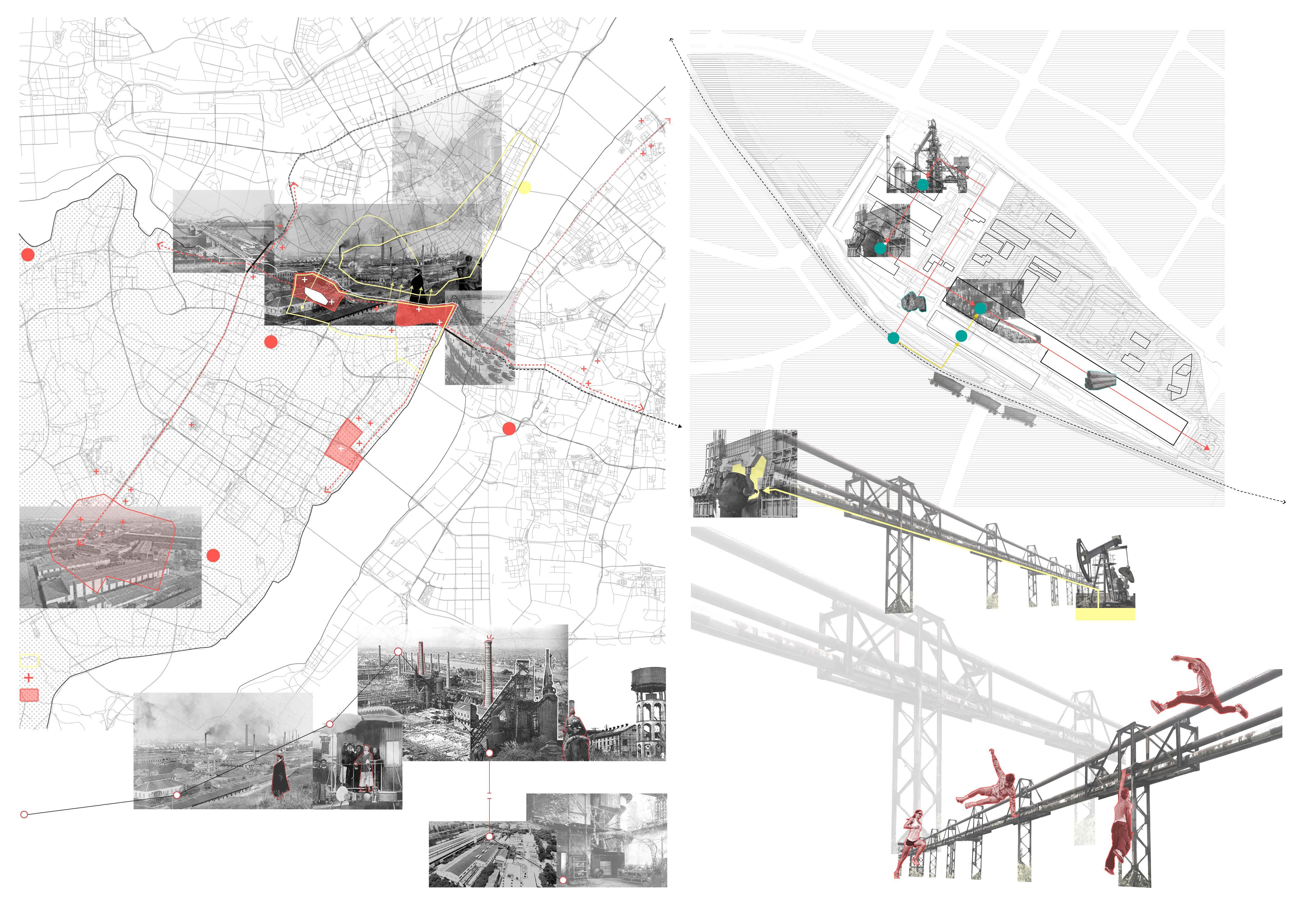 Hanyang Ironwork used to be the most productive steel plant in this country, while after entering into 21st century, the factory was shut down and the site is abandoned. This project proposed a brand new plan to reinvent the factory into a paradise, an amusement park. The previous architectural elements and infrastructures’s meanings are reconstructed and are assigned with new meanings of modern perspective.