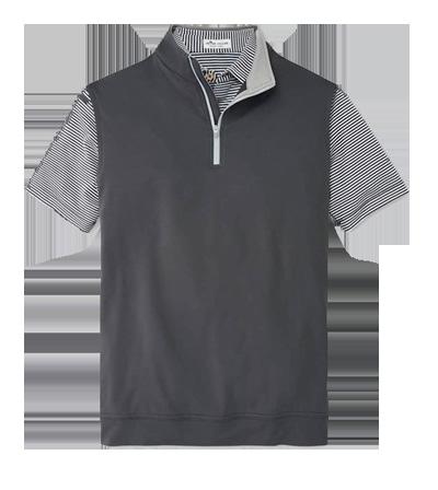 Made from an innovative stretch loop terry fabric that offers moisture-wicking, quick-dry, UPF 50+ sun protection and easy-care. Pair yours with a Peter Millar performance sport shirt and remain cool and comfortable on the course. 89% microfiber polyester / 11% spandex. Classic fit Stretch French terry. Peter Millar logo on back yoke. Machine wash cold with like colors; tumble dry low.