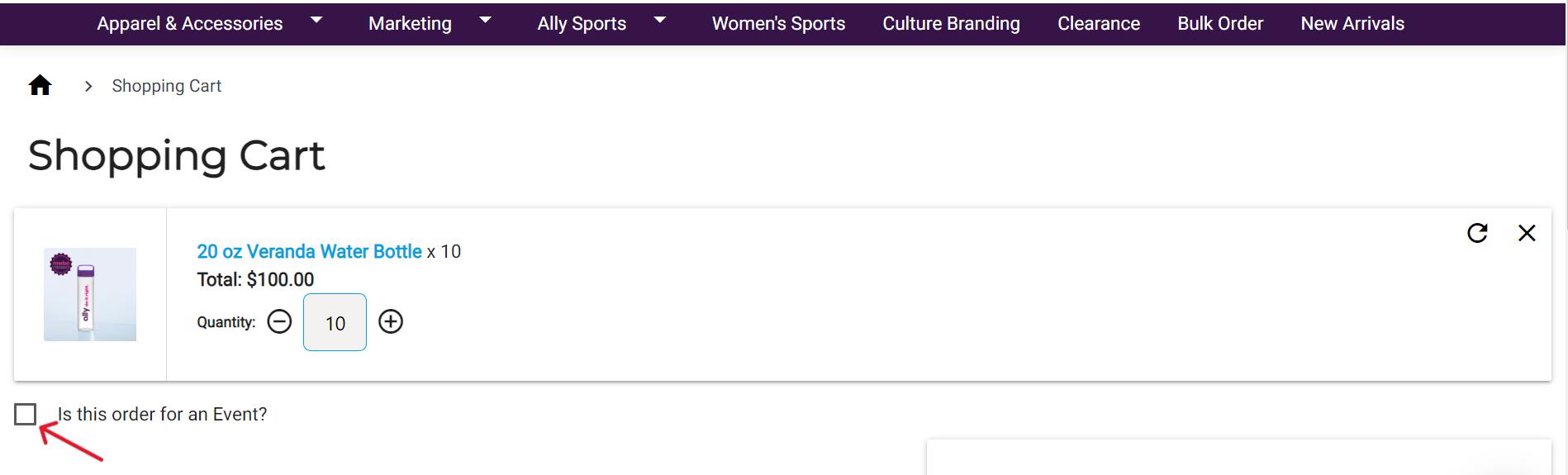 7. Once your shopping is complete, if the order is for an event make sure to check the box below and provide correct dates.
