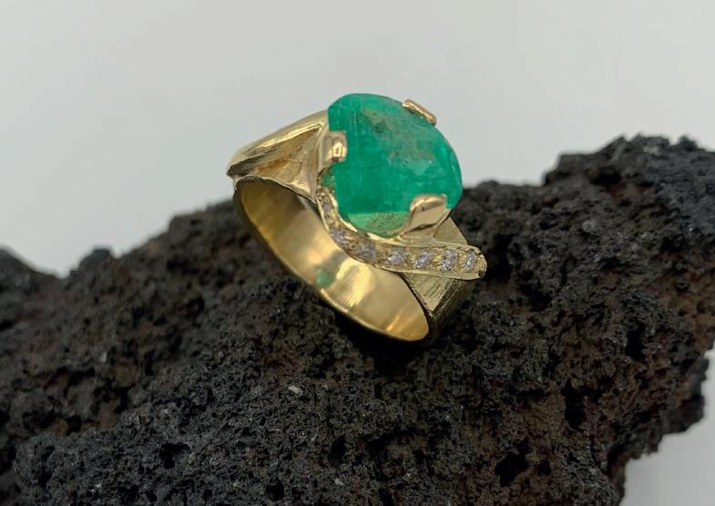 Iprefersemipreciousstones,whichIlikeparticularly forthevarietyofnuances.Theyareintheshowcase andinmostofmycreationsaswell.Carnelianagate, green agate, opal... Especially I like semi-precious stones because you can find all color tones of nature. I don’t use classic workmanship, that of the blue sapphire or the diamond ring, for example... If customers ask me, I can do it of course, but for my style outside of fashion and classicism, I generally prefertousesemi-preciousstones.