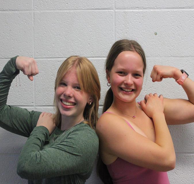 Peyton Davenport (9) and Alexandria Robbins (9) flexing for the camera.