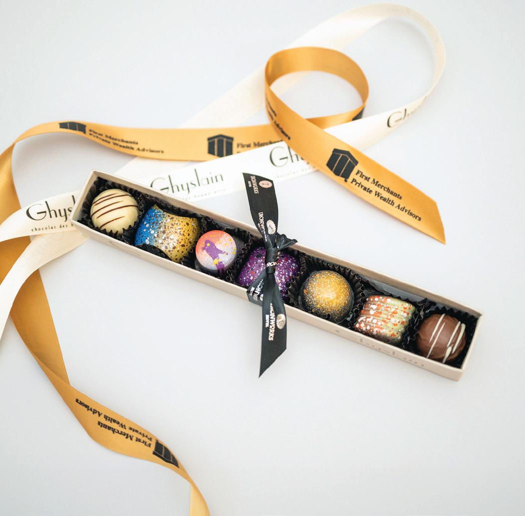 Adding a branded ribbon to your chocolate gift box is a subtle yet impactful way to leave a sweet impression.