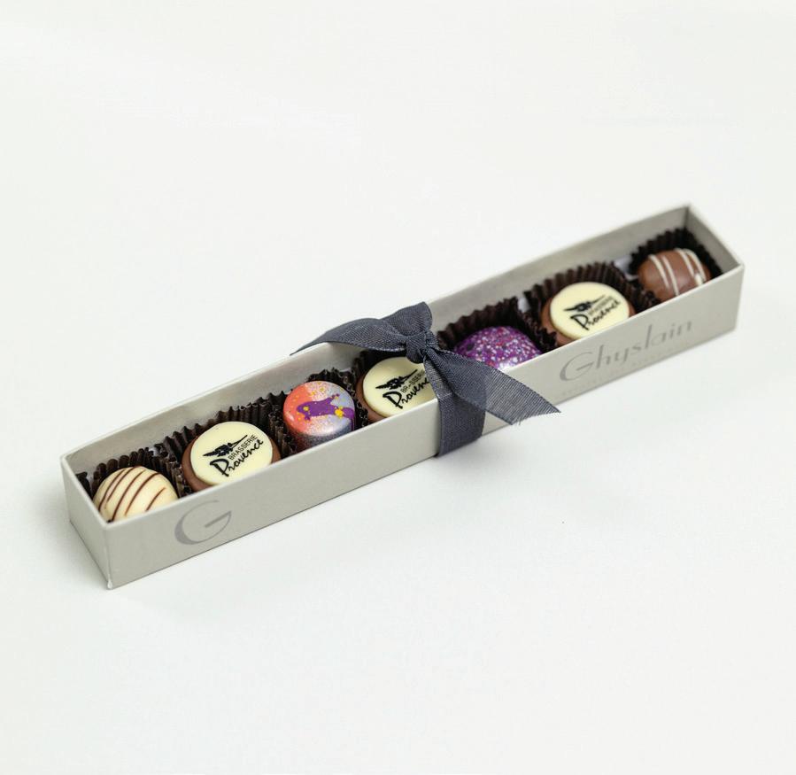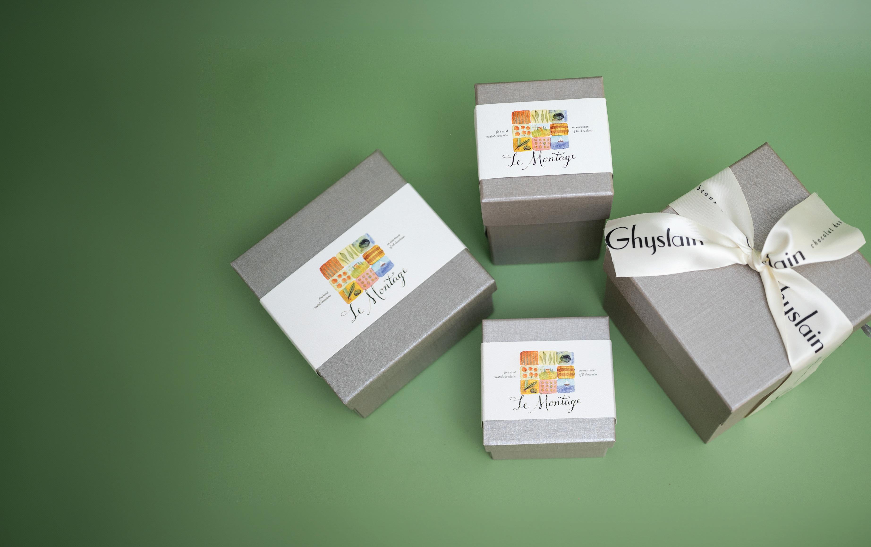 Our hallmark Ghyslain branded window boxes and sleeves featuring a delectable assortment of chocolates exclusively from our Truffle Harmonie Collection.