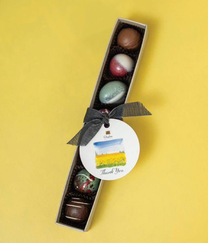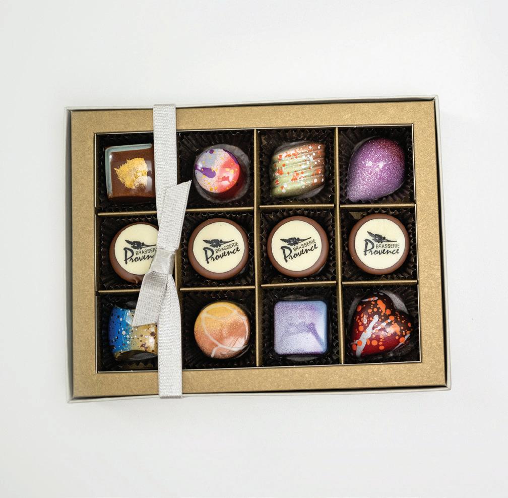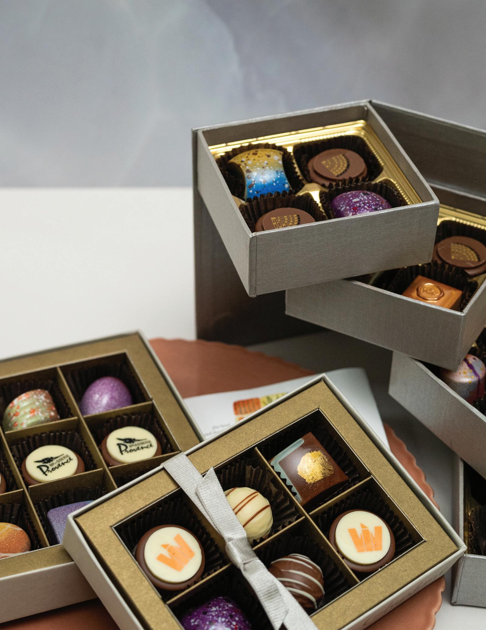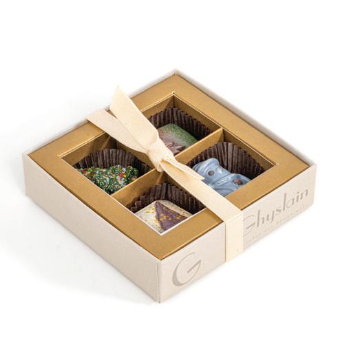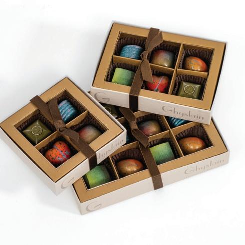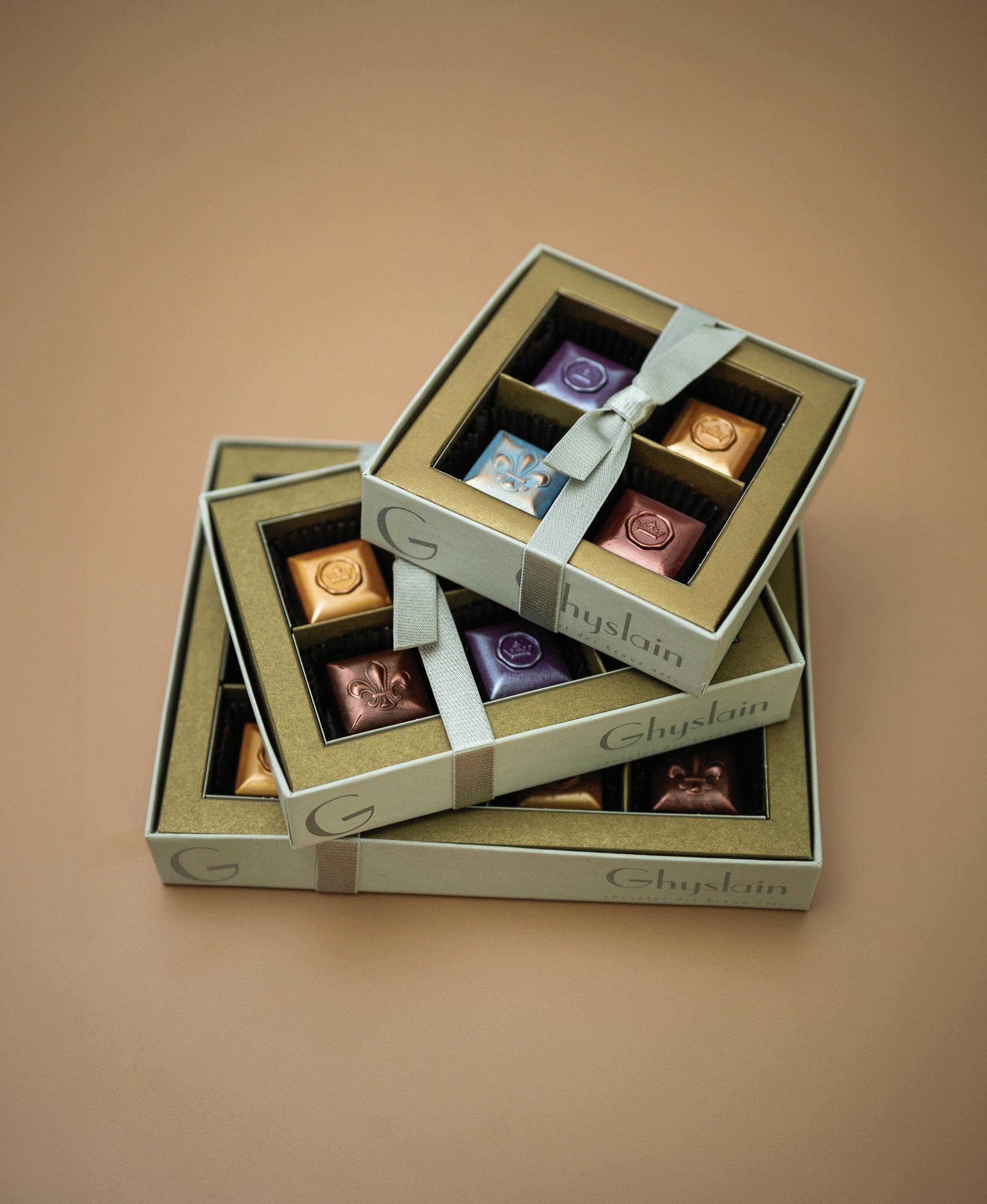 Our hallmark Ghyslain branded window boxes featuring a delectable assortment of chocolates exclusively from our Collection de Caramel.