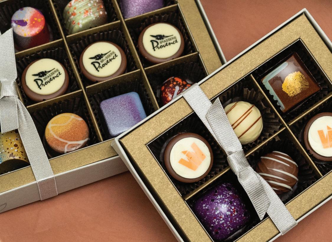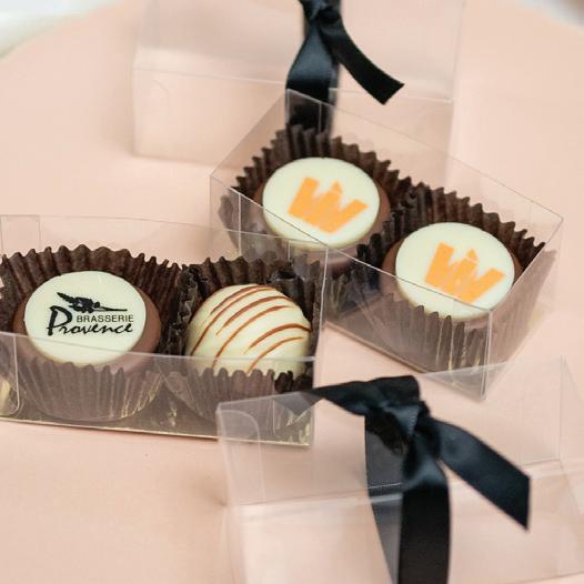 For a truly unique touch, we can craft custom chocolates featuring your company’s logo, allowing your brand to shine through our confectionery artistry.