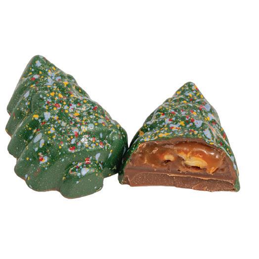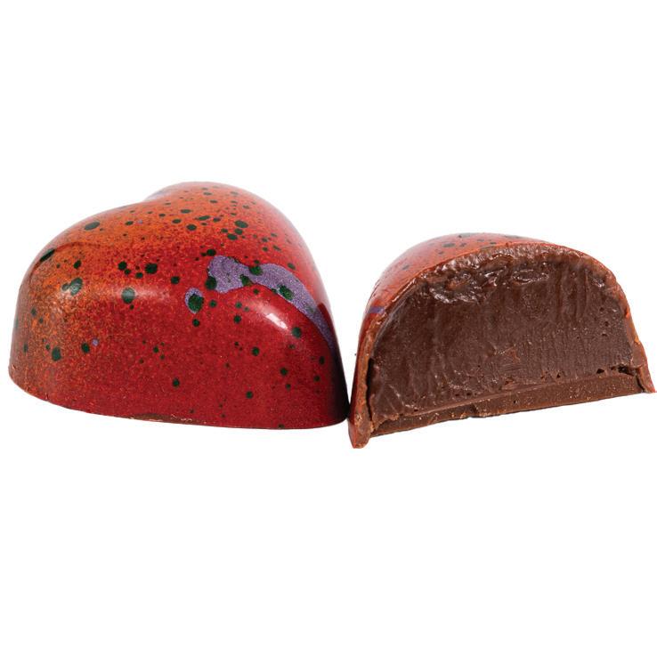 Milk chocolate Corals vibrantly hand-painted with pure cocoa butter. Each color represents a different toasted gourmet nut delicately tucked into a shell filled with Ghyslain’s signature butter caramel.