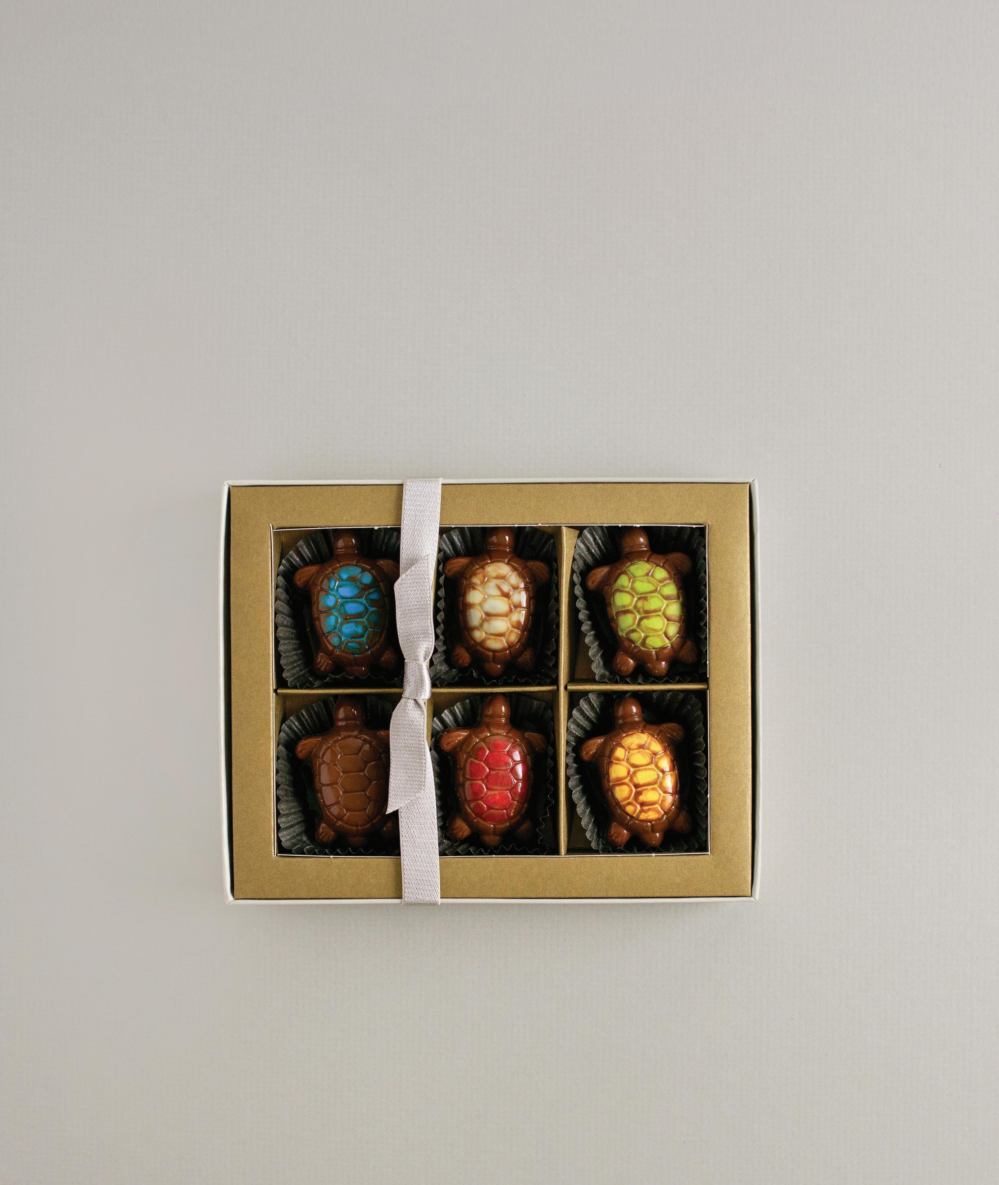 Our hallmark window box beautifully presents an assortment of our six handpainted milk chocolate Corals from Ghyslain’s Coral Mosaique Collection.