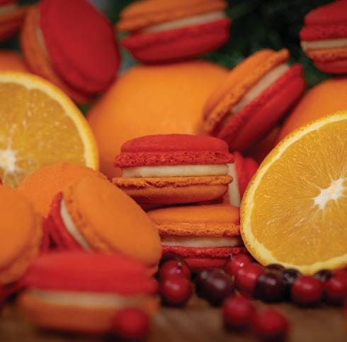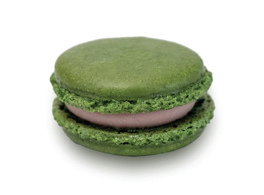 Cherry macaron with dark chocolate Amarena cherry ganache.