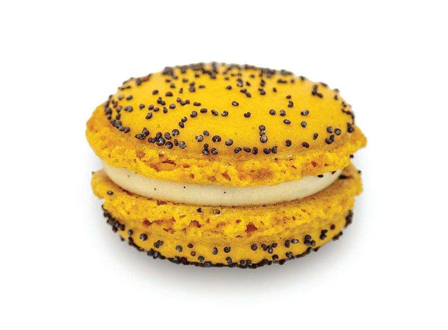 Lemon poppyseed macaron with vanilla white chocolate ganache.
