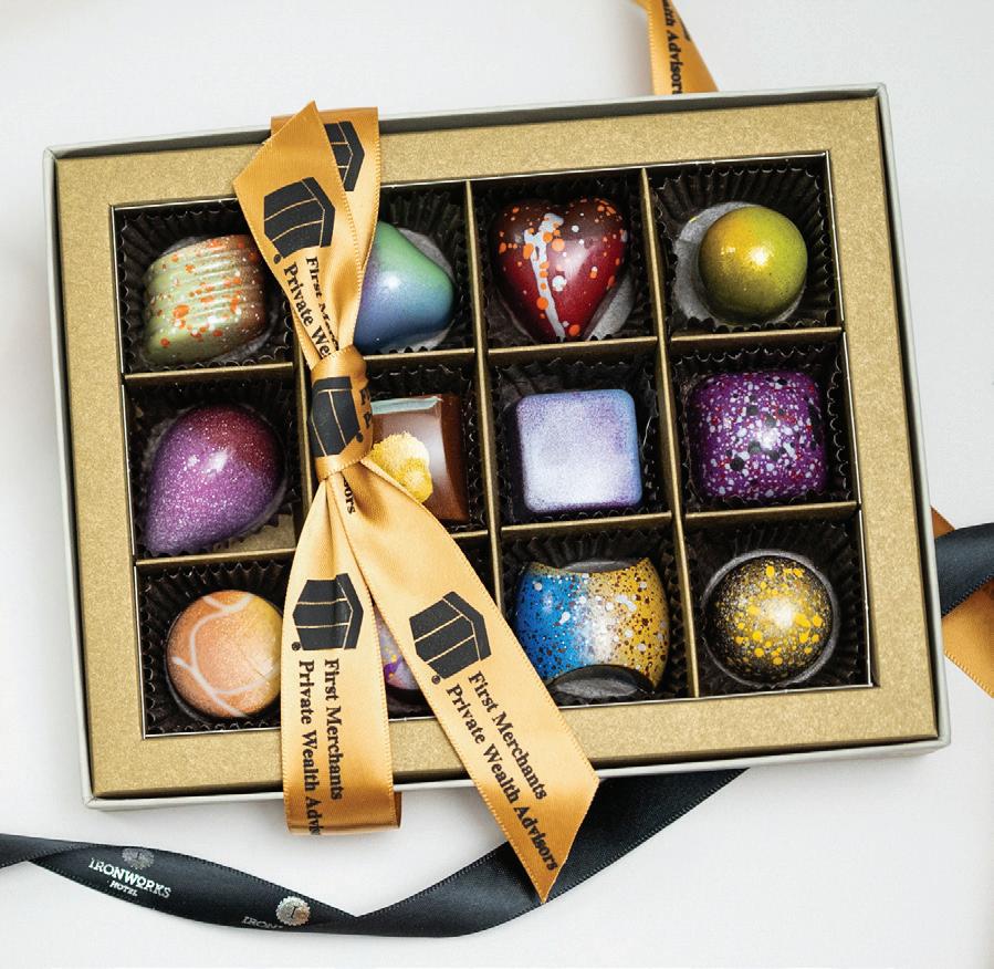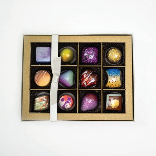 Distinctive handpainted chocolates, each one a detailed work of art.